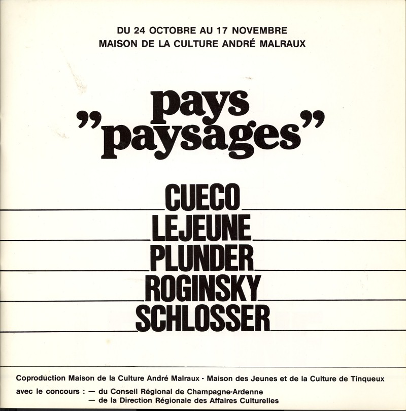 Pays "Paysage" : Cueco - Lejeune - Plunder - Roginskiy - Schollser: exhibition catalogue, 1984, Tinqueux