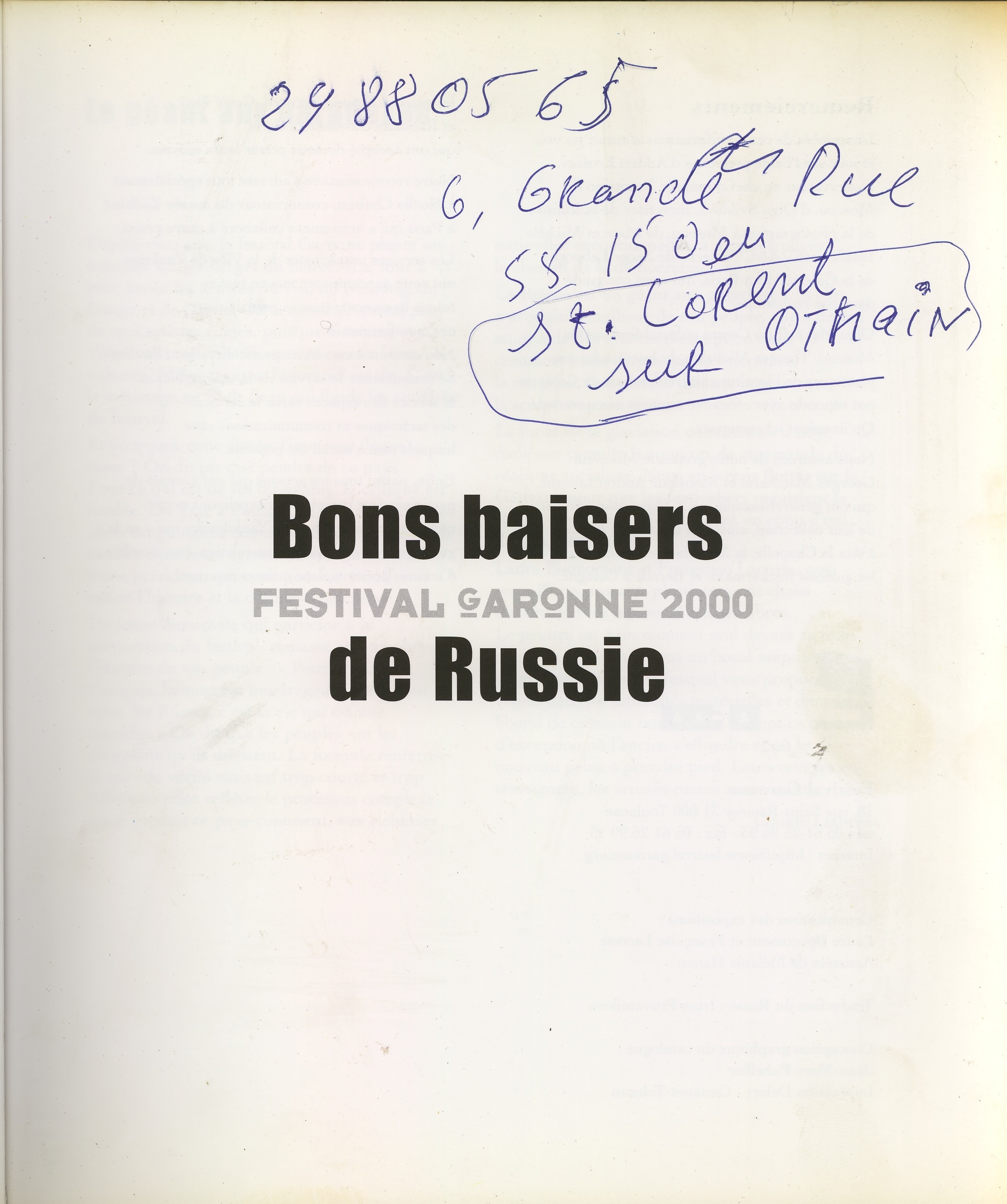 Bons baisers de Russie. Festival Garonne 2000: exhibition catalogue, 2000