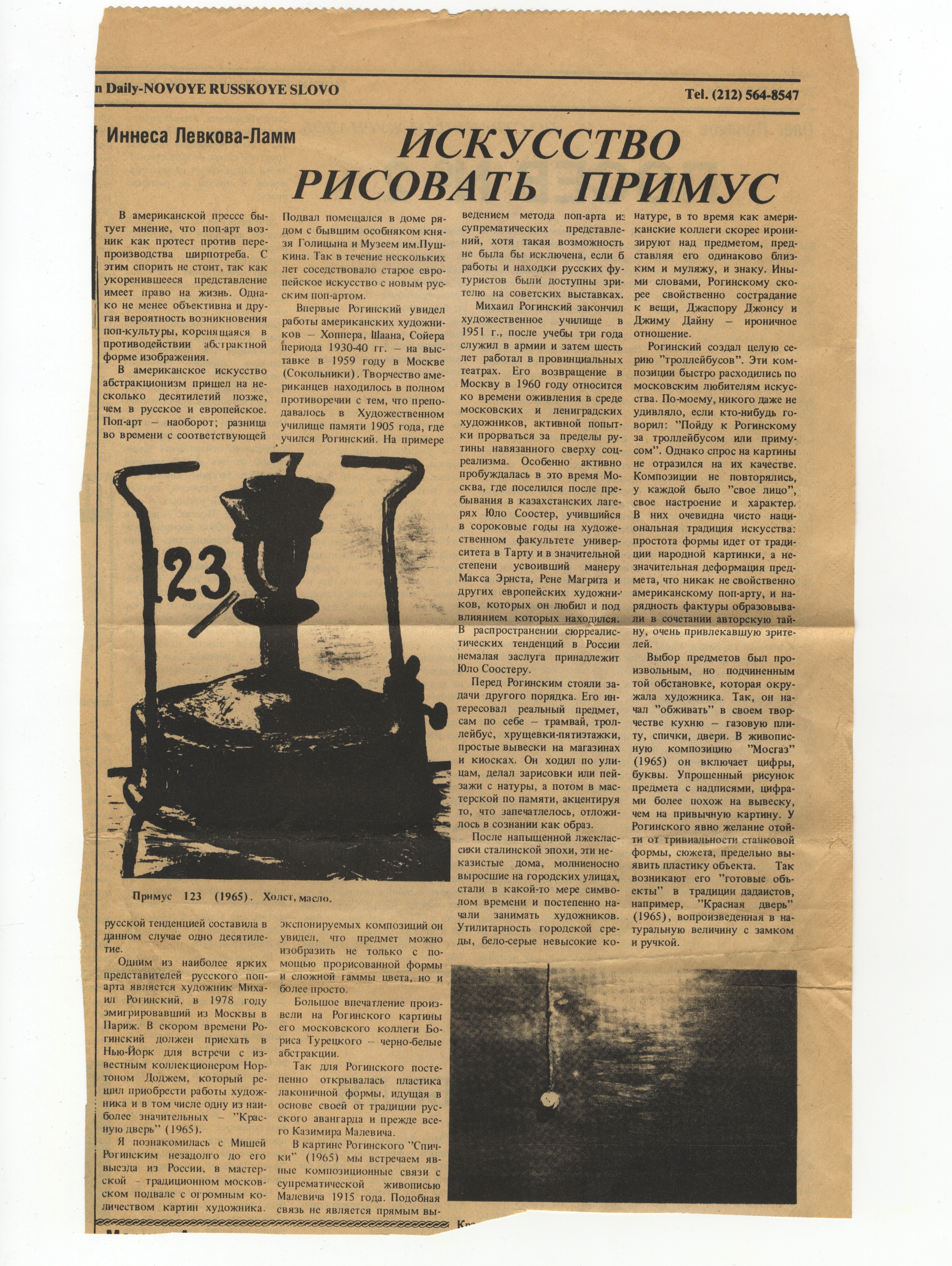 Inessa Levkova-Lamm, The art of drawing the Primus stove, New Russian Word, 12.03.1984, New York