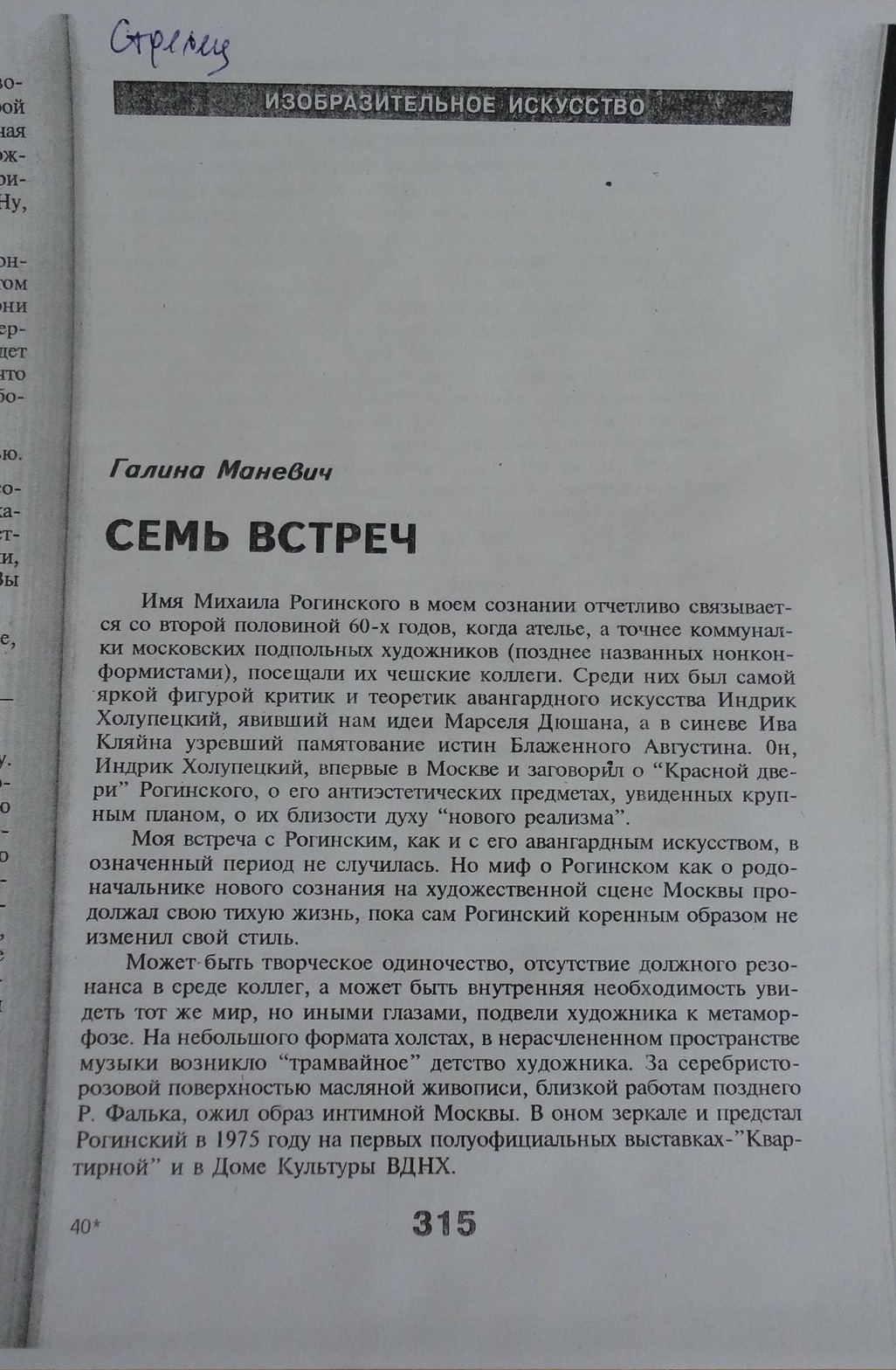 Galina Manevich, Syem’ vstrech (Seven Meetings) , Strelets, 1996, 1 (77), Moscow