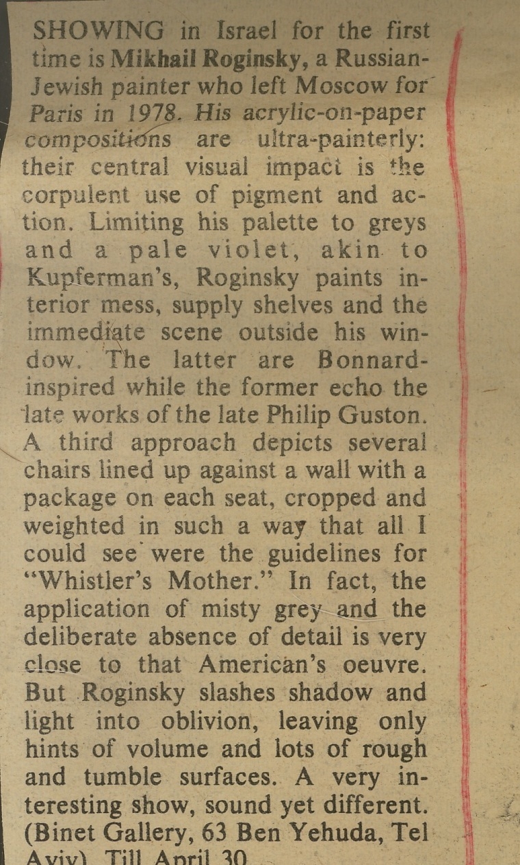 Mikhail Roginsky, Jerusalem Post Magazine, 23.03.1982, Иерусалим