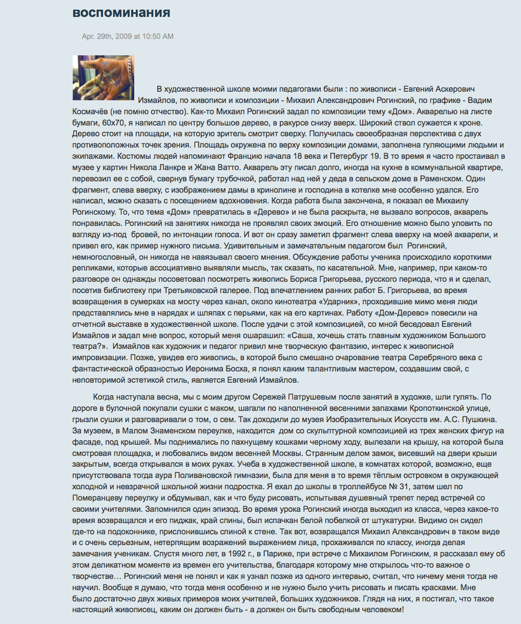 Aleksandr Popov, Воспоминания, LiveJournal, 29.04.2009, Москва