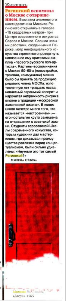Милена Орлова, Roginskii vspomnil o Moskve s otvrachsheniem, Kommersant-Vlast, 08.06.1999, 22 (323), Moscow