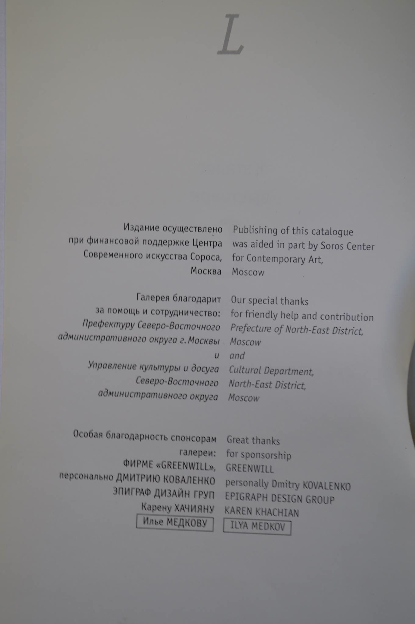 Елена Романова, Katalog vystavok L-galerei. Dekabr 1991 - aprel 1998, ОГИ, Moscow