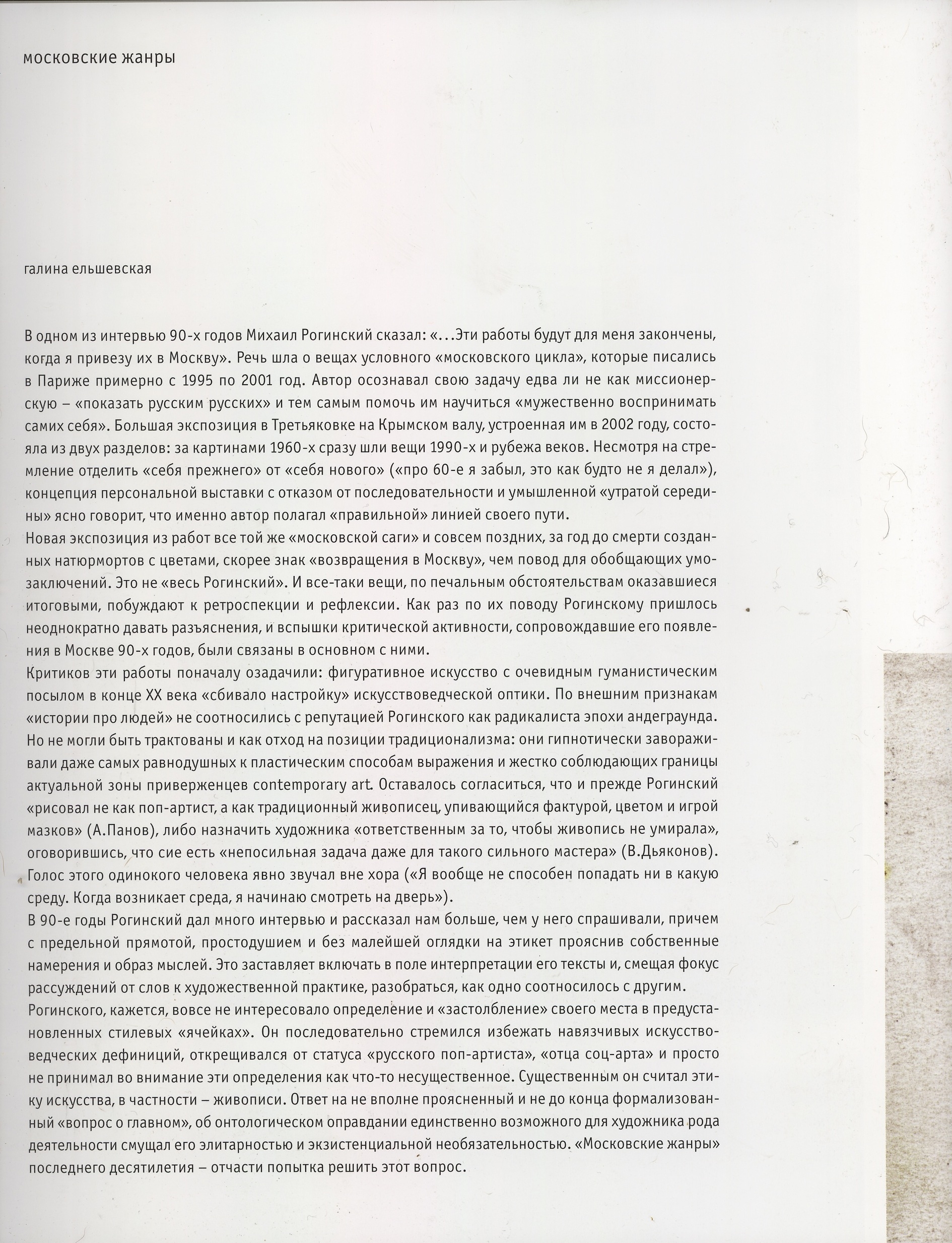 Galina Elshevskaya, Московские жанры