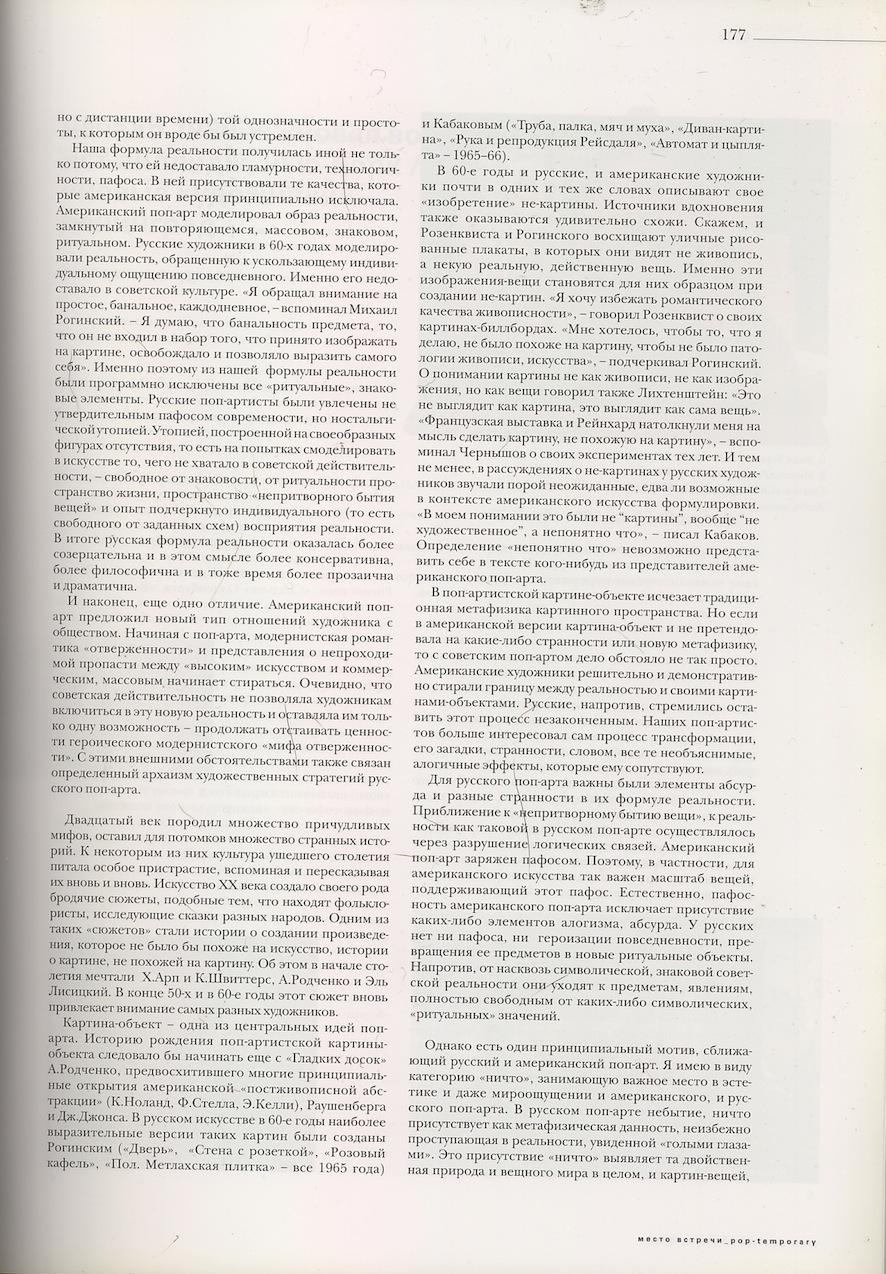 Ekaterina Bobrinskaya, Американсеий и советский поп-арт Формулы реальности, Pinakoteka, 01.01.2006, 1-2, Москва