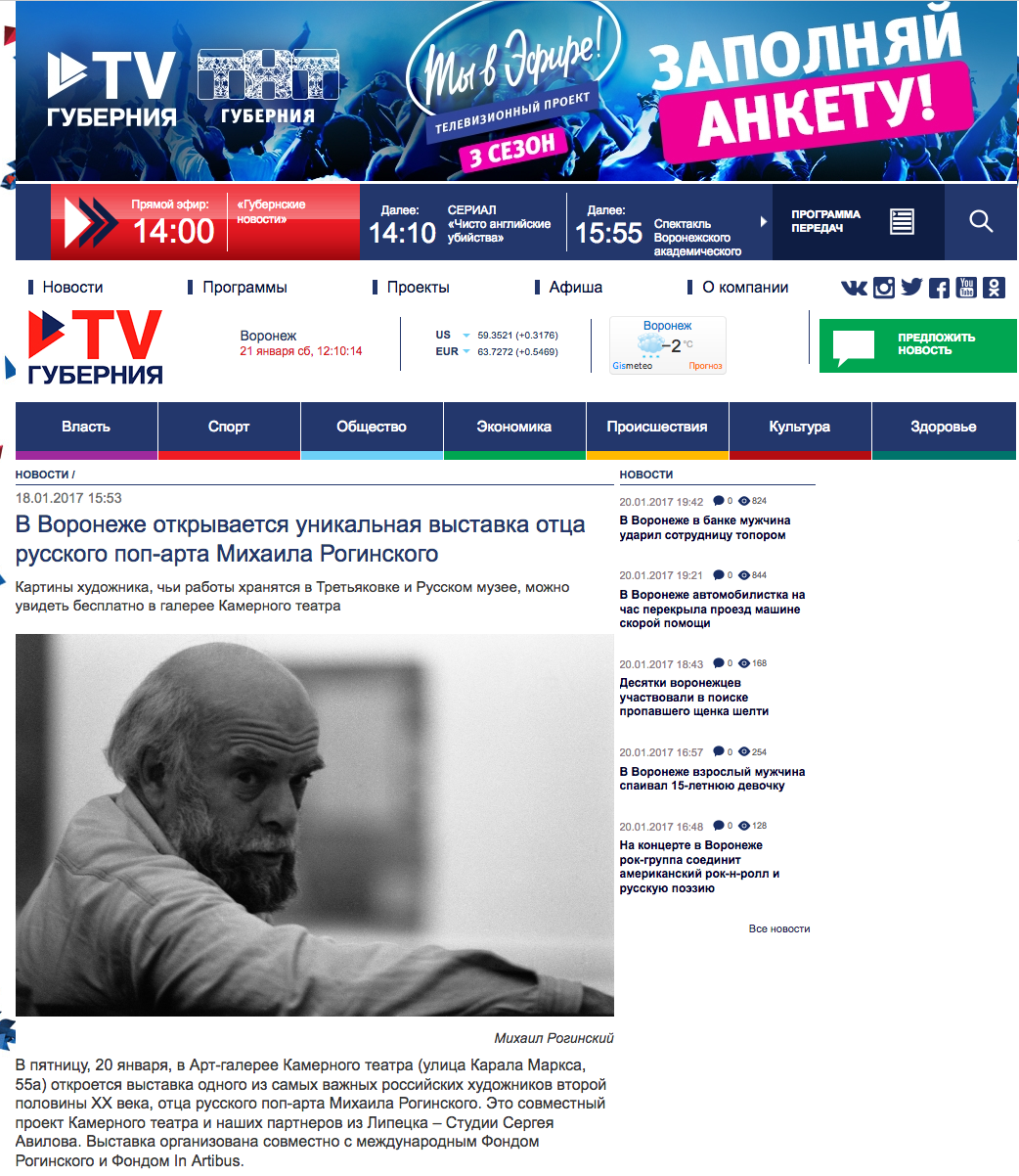 В Воронеже открывается уникальная выставка отца русского поп-арта Михаила Рогинского, TV Губерния, 18.01.2017, Воронеж
