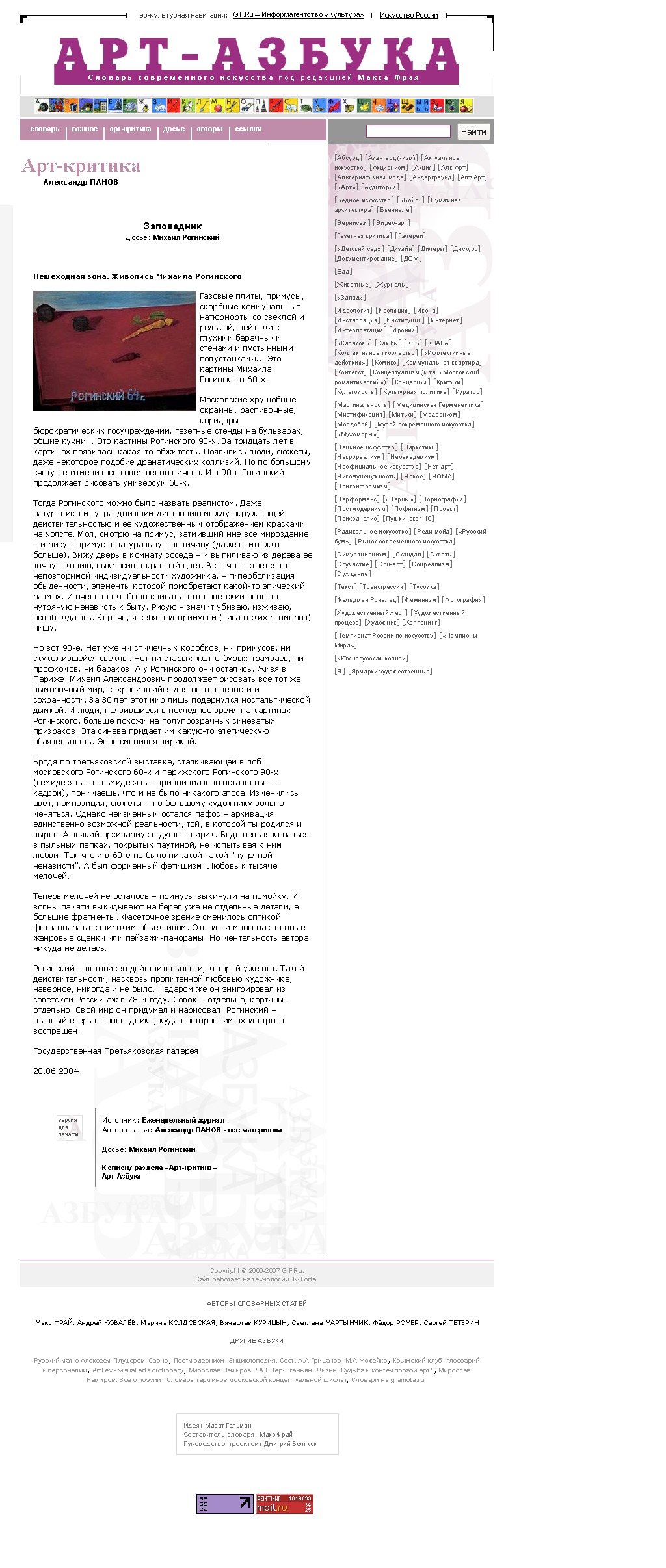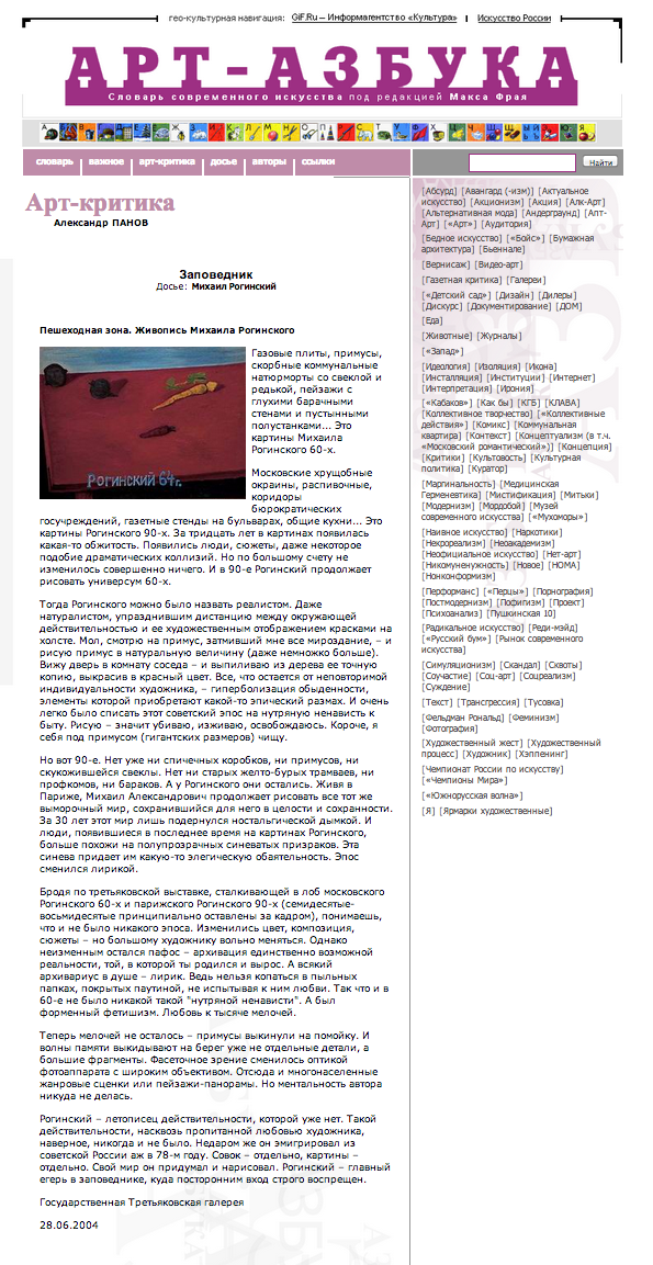 Александр Панов, Заповедник, Еженедельный журнал, 28.06.2004, Москва