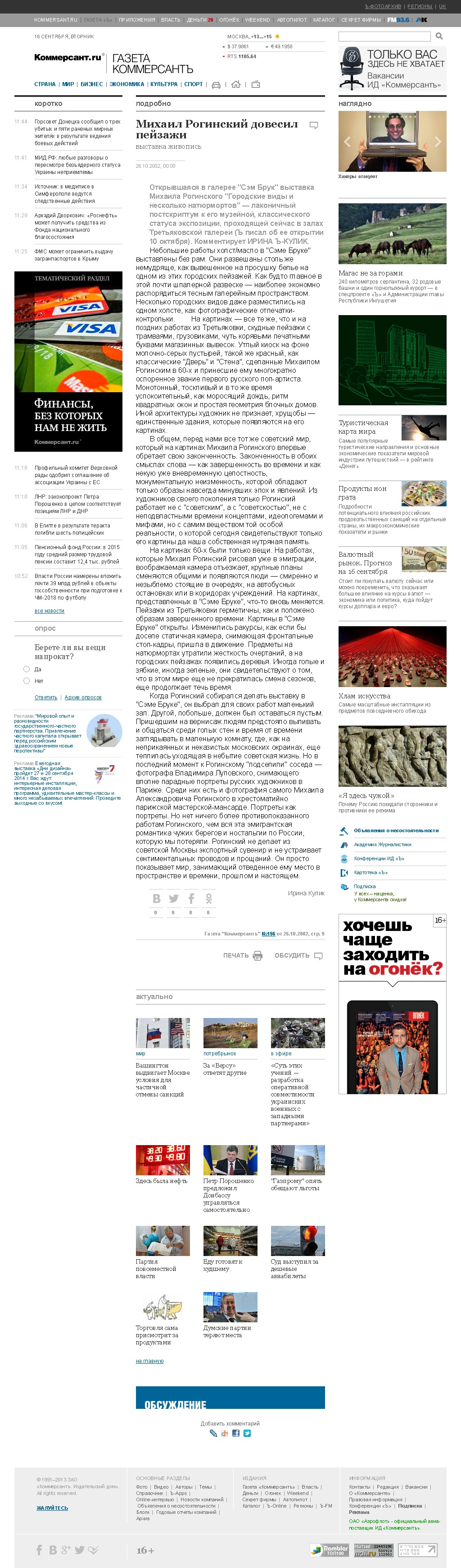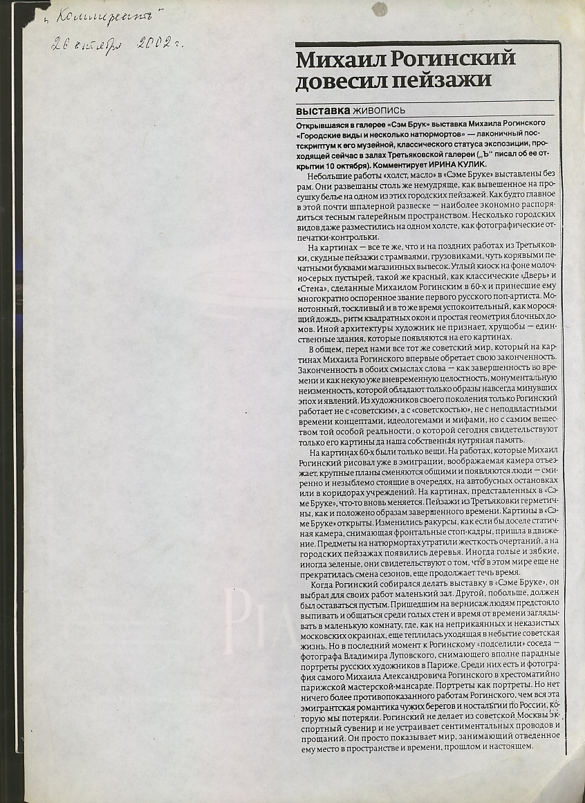 Ирина Кулик, Михаил Рогинский довесил пейзажи, 26.10.2002, Москва