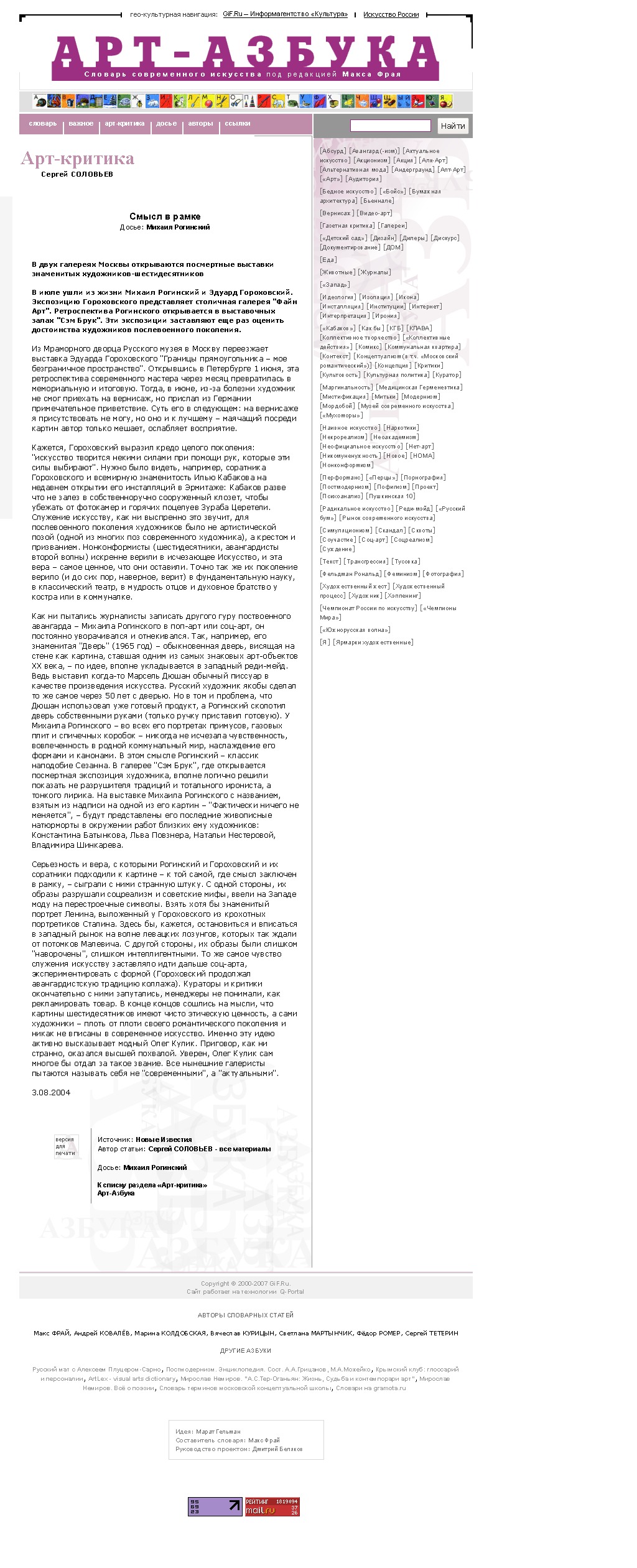 Сергей Соловьев, Смысл в рамке, Новые известия, 03.08.2004, Москва