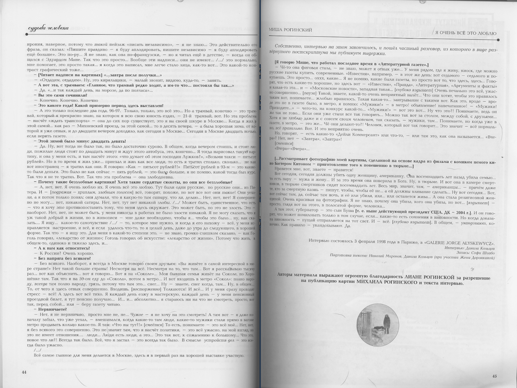 Даниил Кольцов, Я очень все это люблю : Интервью с М. Рогинским : Д. Кольцов, Нашли, 2004, 05, Москва