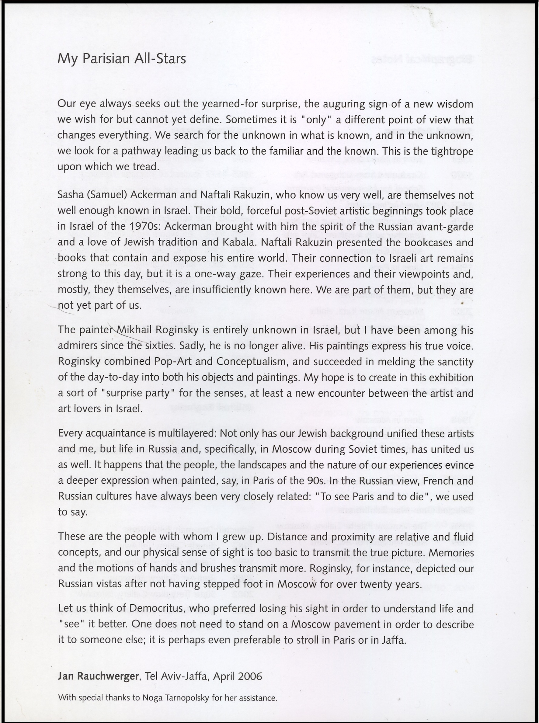 My Parisian all-stars, 2006, Тель-Авив