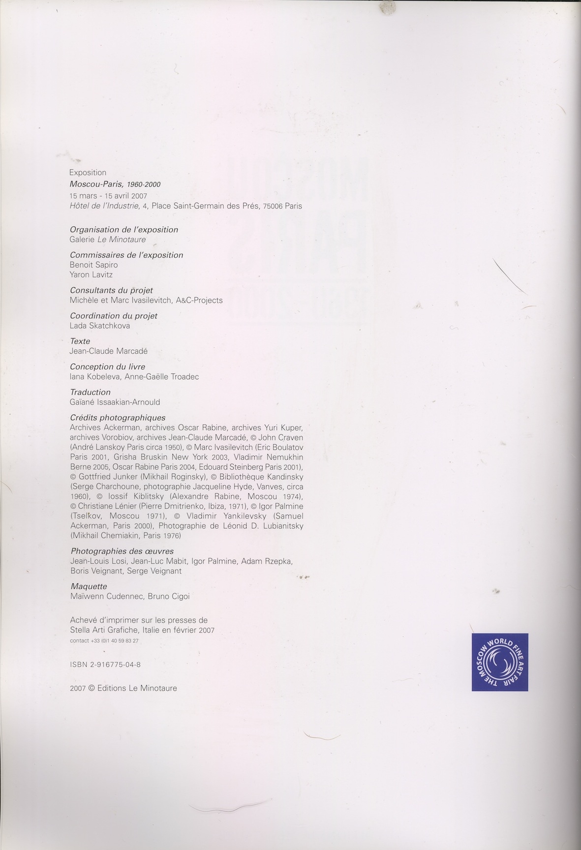 La deuxième avant-garde. Moscou-Paris. Vol. II. 1960-2000, 2007, Paris / Париж