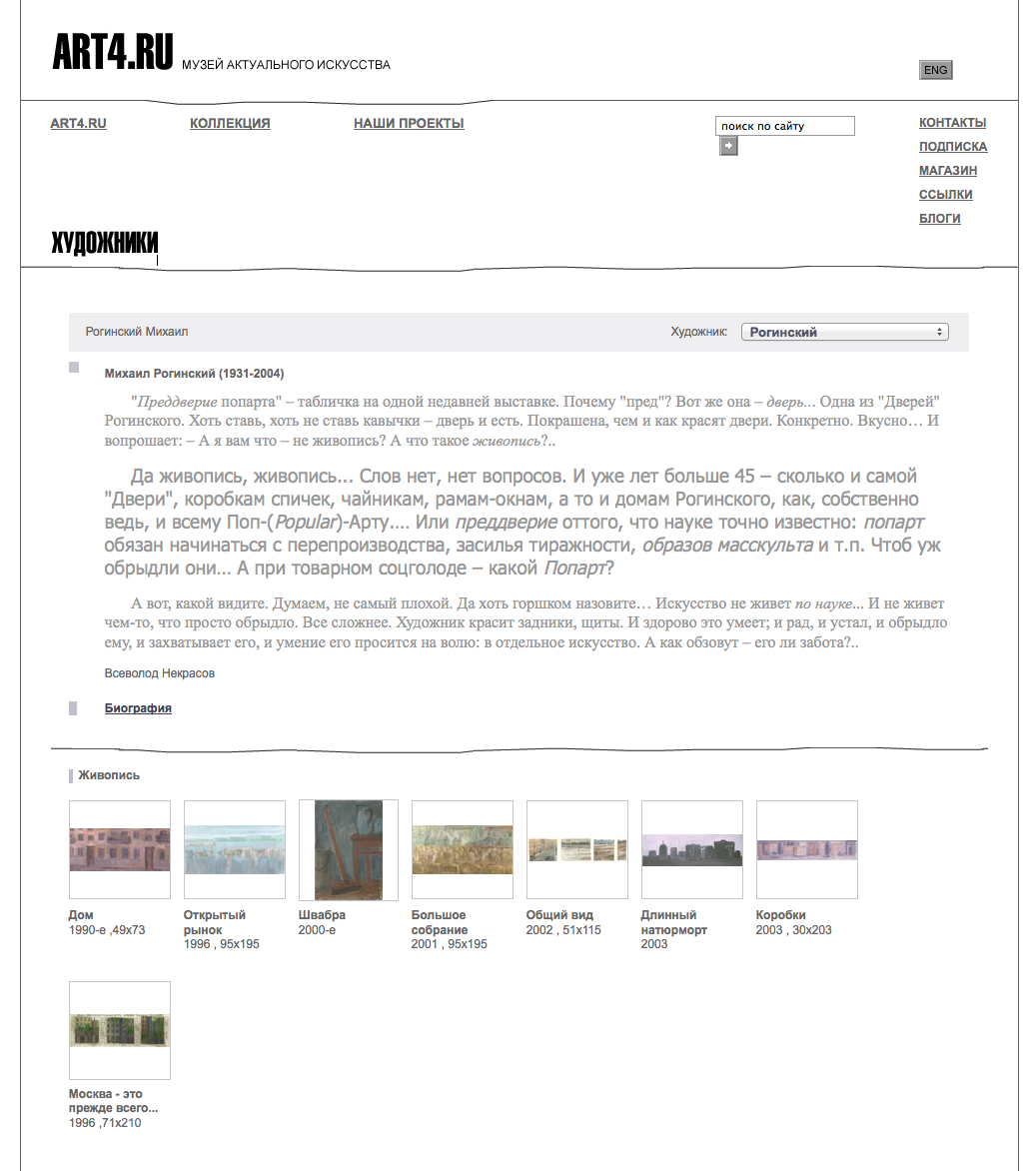 Да живопись, живопись... Слов нет, нет вопросов. И уже лет больше 45 – сколько и самой "Двери", коробкам спичек, чайникам, рамам-окнам, а то и домам Рогинского, как, собственно ведь, и всему Поп-(Popular)-Арту.… Или преддверие оттого, что науке точно известно: попарт обязан начинаться с перепроизводства, засилья тиражности, образов масскульта и т.п. Чтоб уж обрыдли они… А при товарном соцголоде – какой Попарт?
