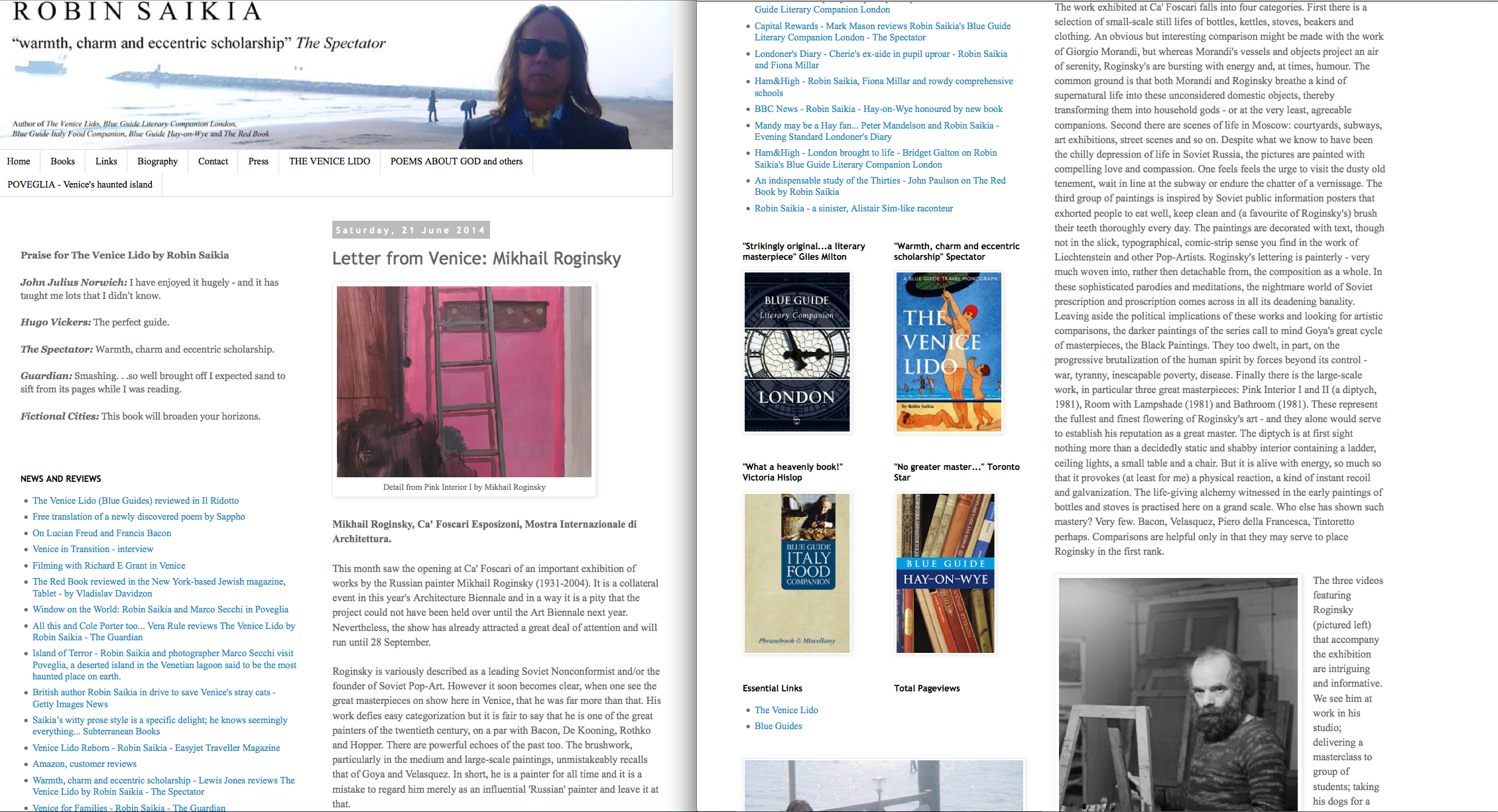 Roginsky is variously described as a leading Soviet Nonconformist and/or the founder of Soviet Pop-Art. However it soon becomes clear, when one see the great masterpieces on show here in Venice, that he was far more than that. His work defies easy categorization but it is fair to say that he is one of the great painters of the twentieth century, on a par with Bacon, De Kooning, Rothko and Hopper. There are powerful echoes of the past too. The brushwork, particularly in the medium and large-scale paintings, unmistakeably recalls that of Goya and Velasquez. In short, he is a painter for all time and it is a mistake to regard him merely as an influential 'Russian' painter and leave it at that.