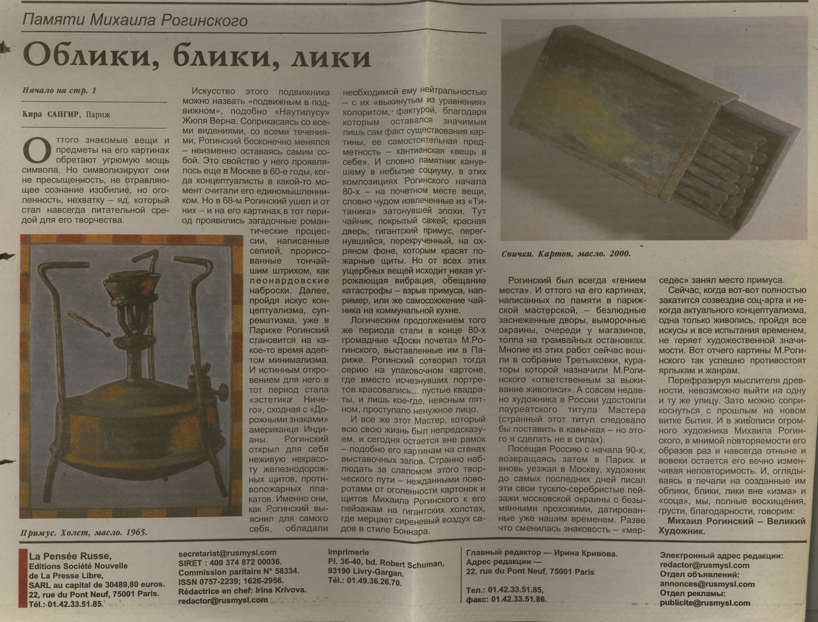 Кира Сапгир , Облики, блики, лики, Русская мысль, 08.07.2004, 27 (4512), Париж