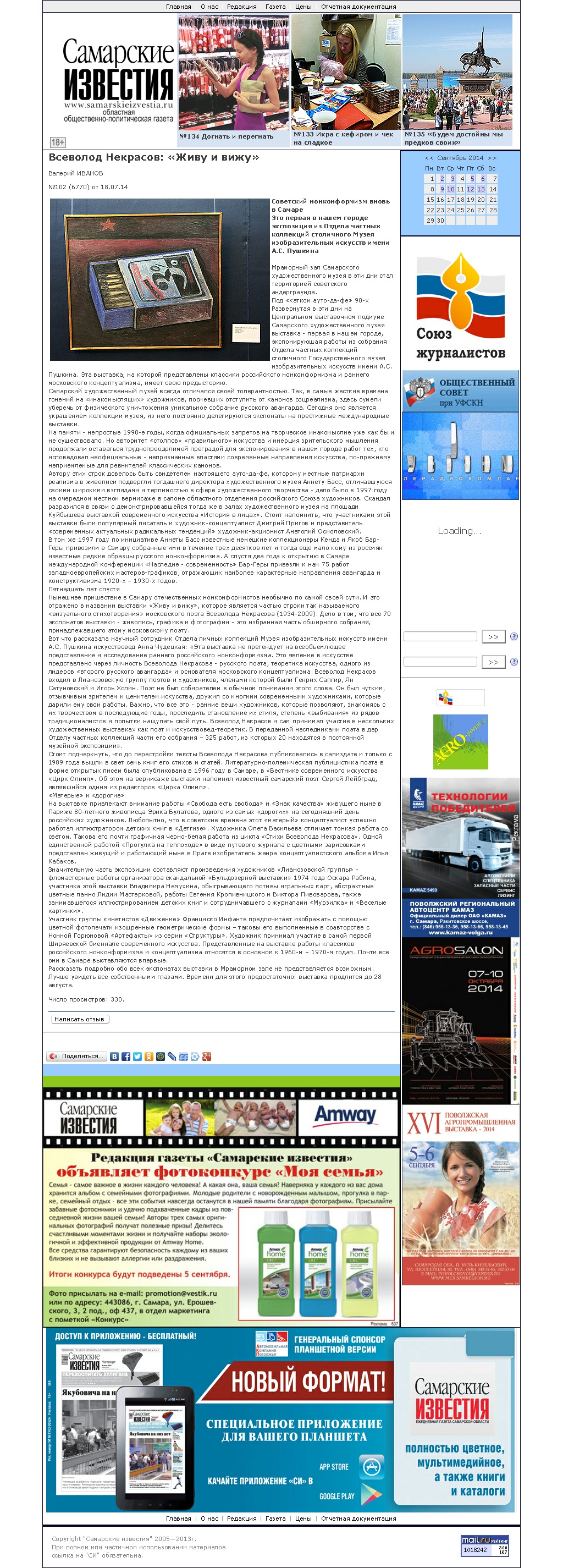 Нынешнее пришествие в Самару отечественных нонконформистов необычно по самой своей сути. И это отражено в названии выставки «Живу и вижу», которое является частью строки так называемого «визуального стихотворения» московского поэта Всеволода Некрасова (1934-2009). Дело в том, что все 70 экспонатов выставки - живопись, графика и фотографии - это избранная часть обширного собрания, принадлежавшего этому московскому поэту.