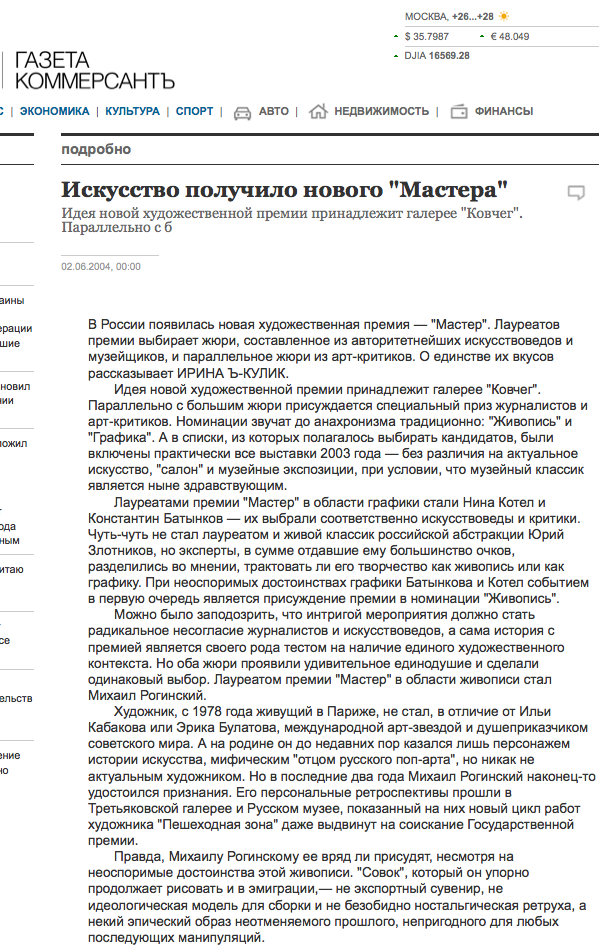 Ирина Кулик, Искусство получило нового "Мастера" , Коммерсантъ, 02.06.2004, Москва