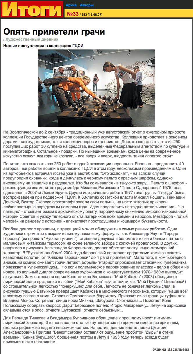 Жанна Васильева, Опять прилетели грачи : Новые поступления в коллекцию ГЦСИ, Итоги, 33 (583), Москва