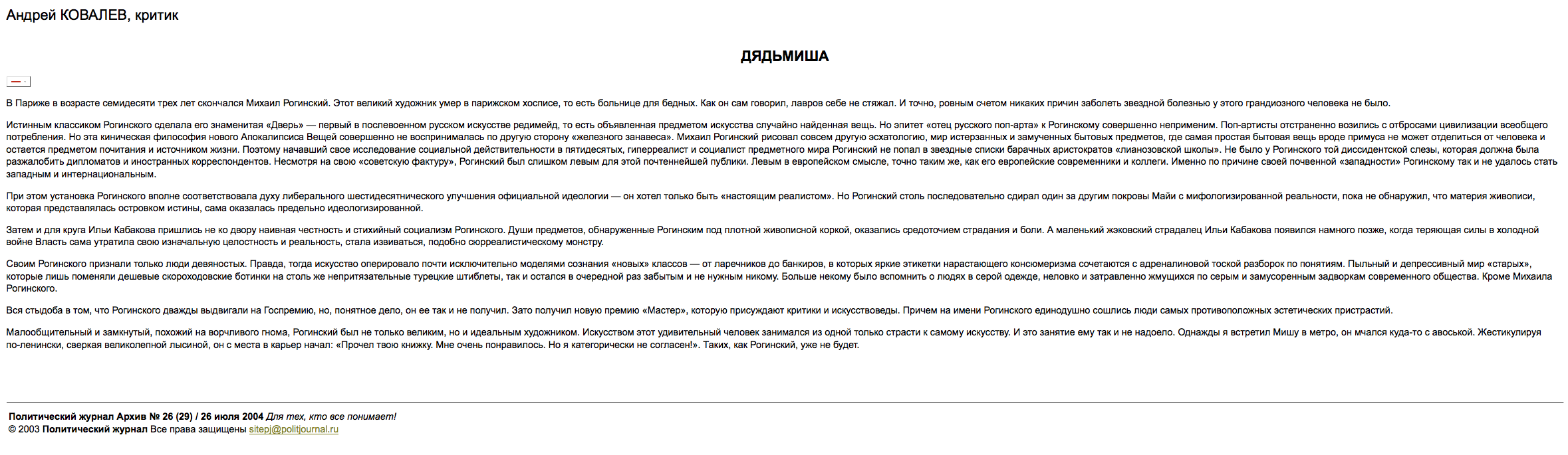 Андрей Ковалев, Дядьмиша, Политическй журнал, 27.07.2004, Москва