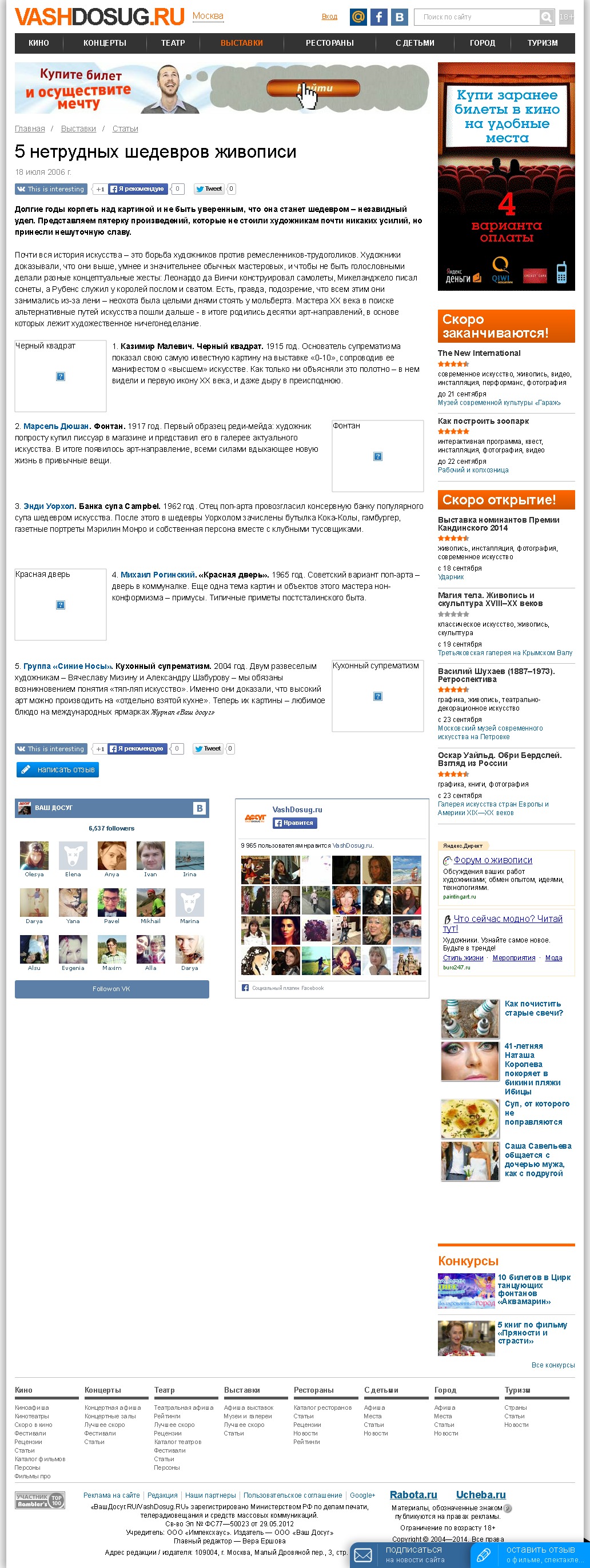 5 нетрудных шедевров, Ваш досуг, 18.07.2006, Москва