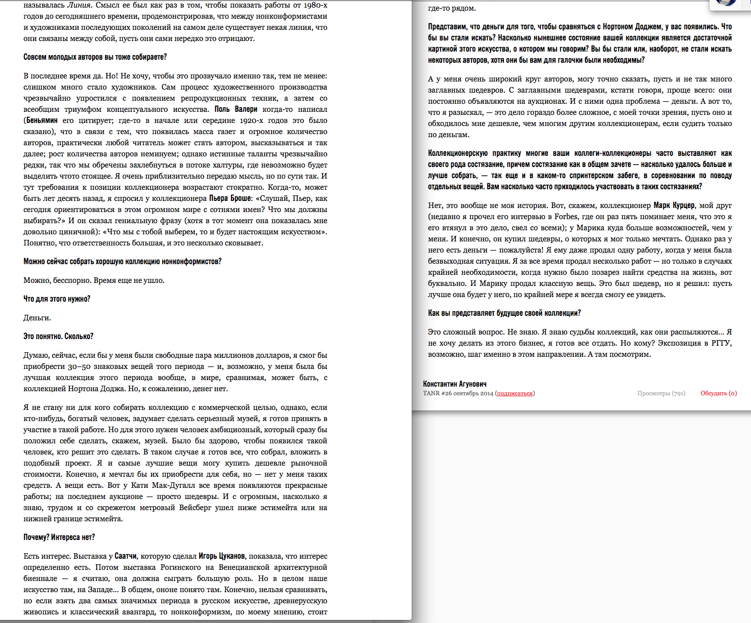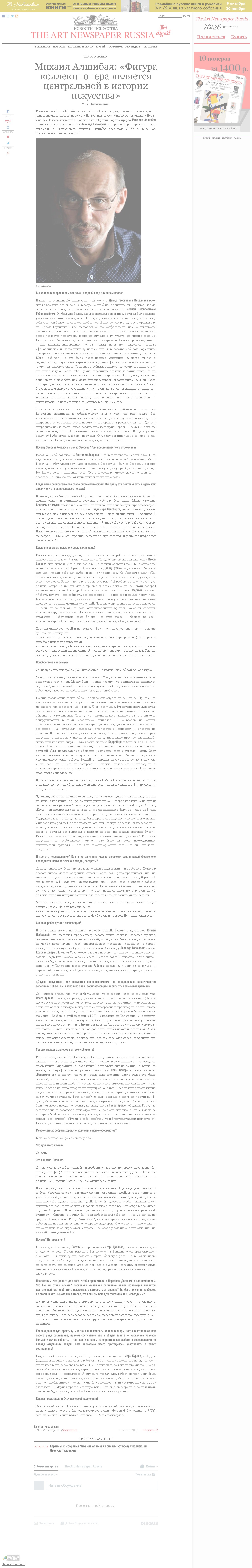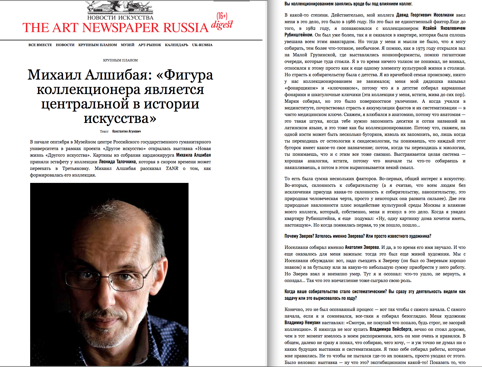 Константин Агунович, Михаил Алшибая: "Фигура коллекционера является центральной в истории искусства", The Art Newspaper Russia, 03.09.2014, Москва