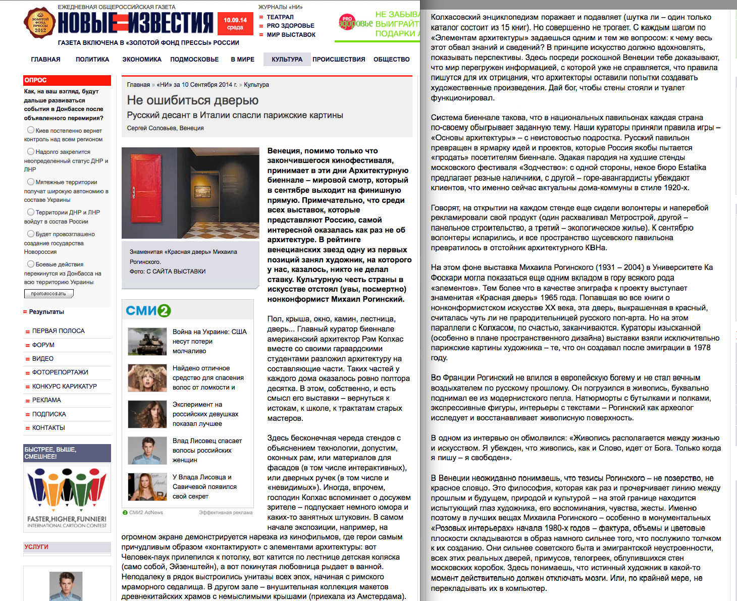 Венеция, помимо только что закончившегося кинофестиваля, принимает в эти дни Архитектурную биеннале – мировой смотр, который в сентябре выходит на финишную прямую. Примечательно, что среди всех выставок, которые представляют Россию, самой интересной оказалась как раз не об архитектуре. В рейтинге венецианских звезд одну из первых позиций занял художник, на которого у нас, казалось, никто не делал ставку. Культурную честь страны в искусстве отстоял (увы, посмертно) нонконформист Михаил Рогинский.