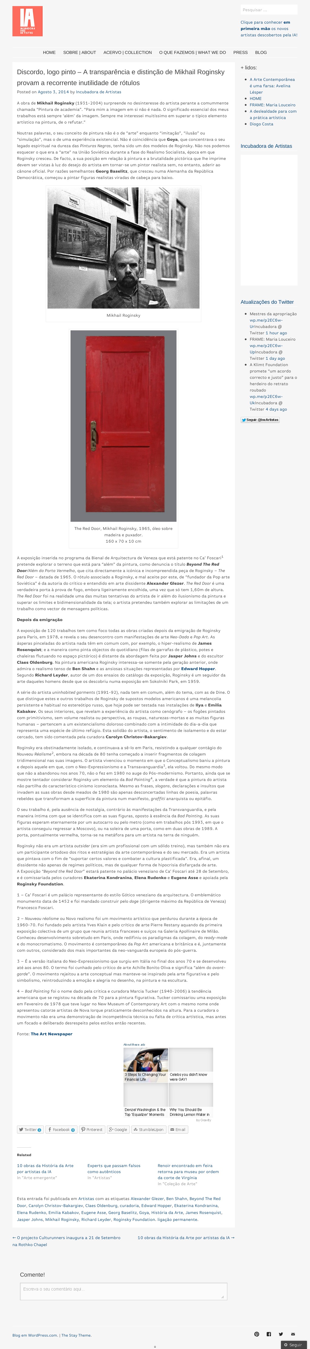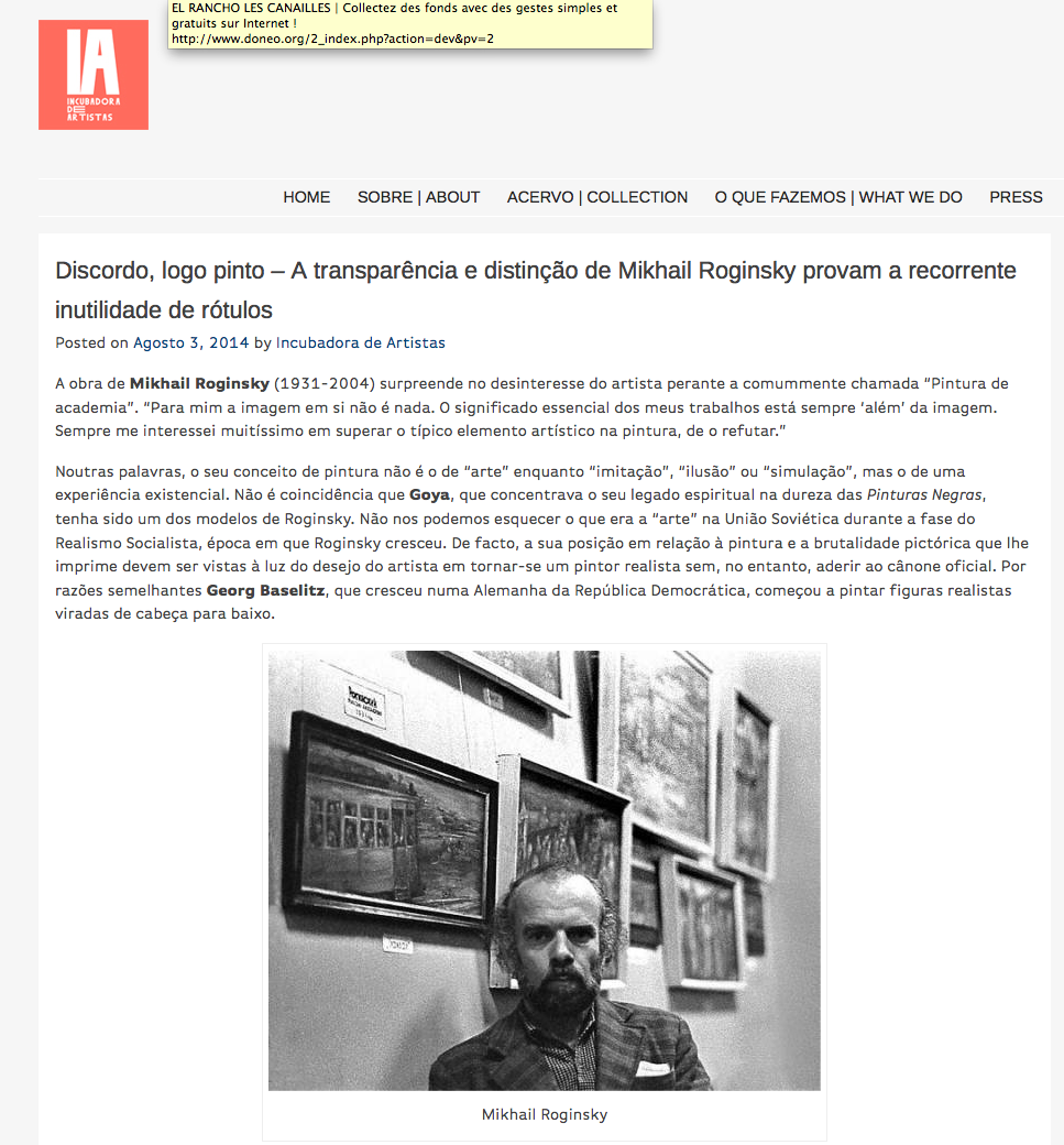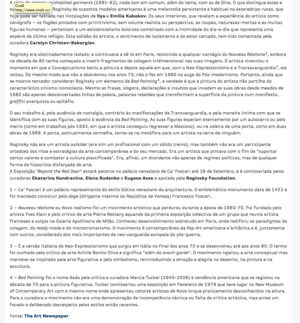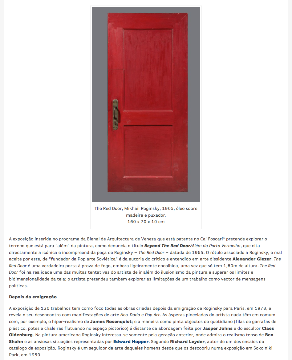 Franco Fanelli, Discordo, logo pinto – A transparência e distinção de Mikhail Roginsky provam a recorrente inutilidade de rótulos, Incubadora de artistas, 03.08.2014, Лиссабон