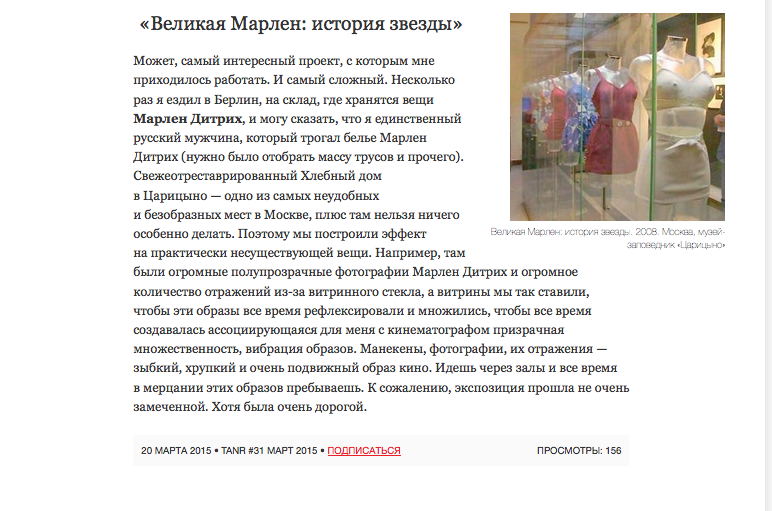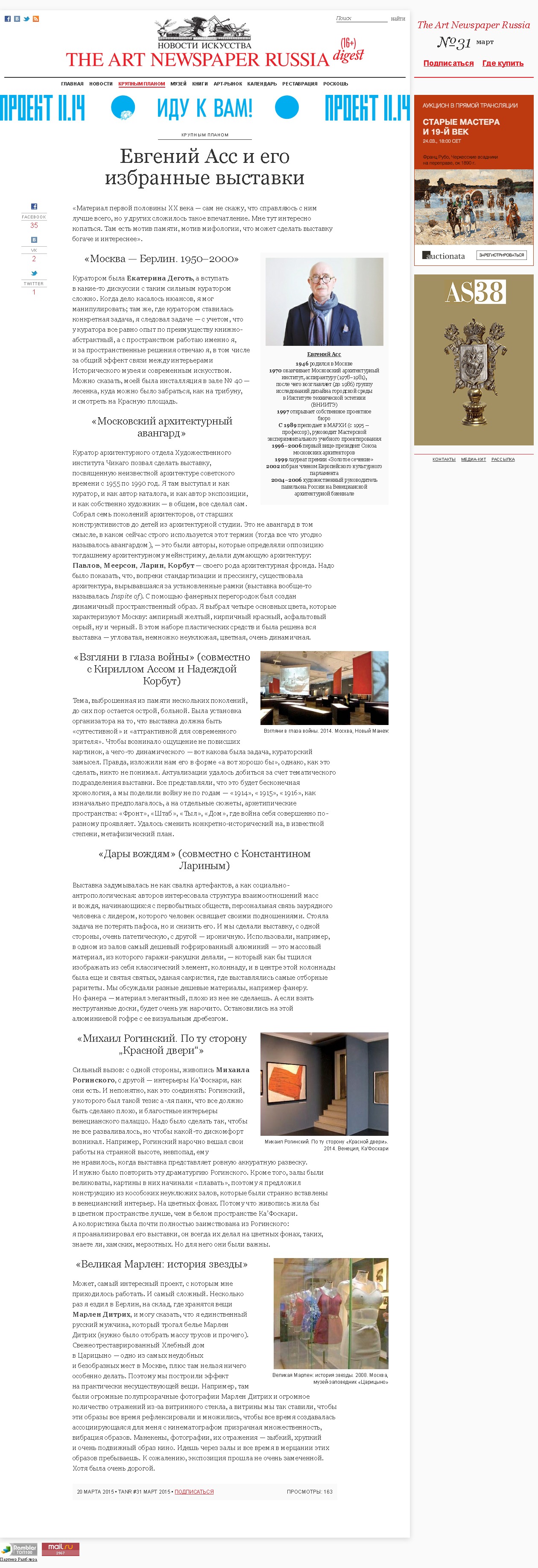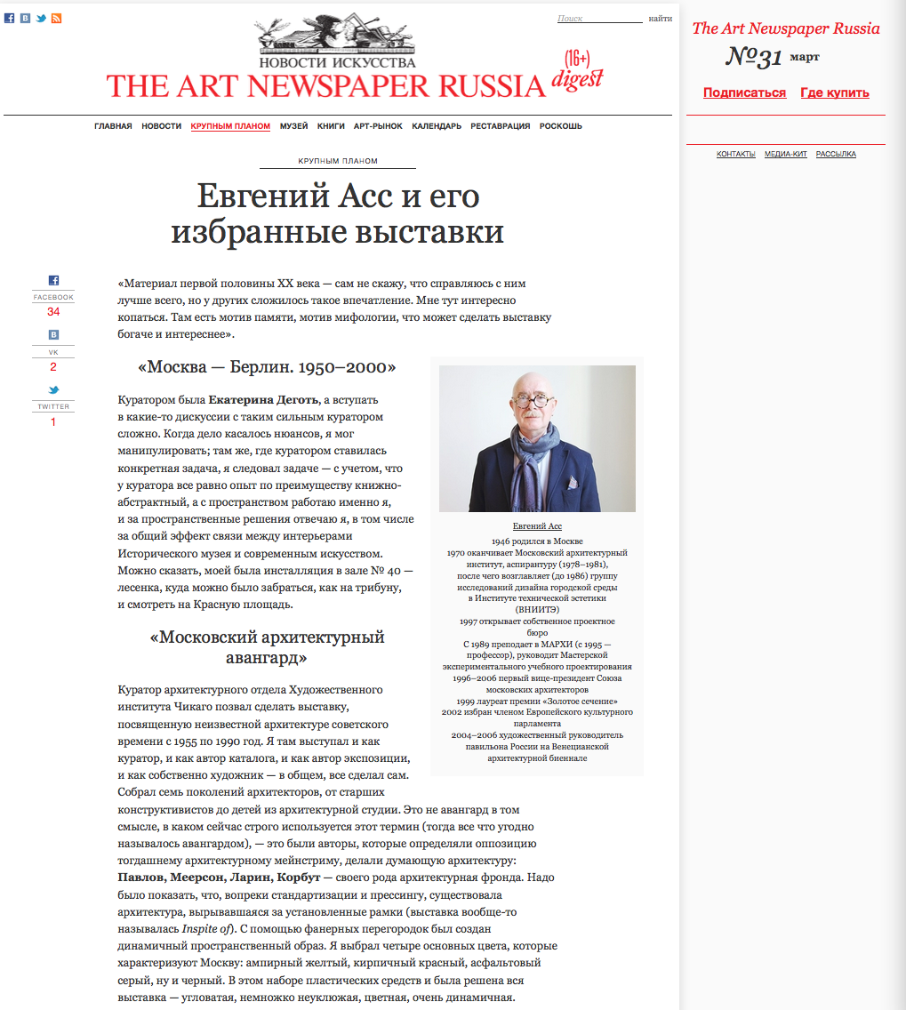Евгений Асс и его избранные выставки, The Art Newspaper Russia, 01.03.2015, 31, Москва