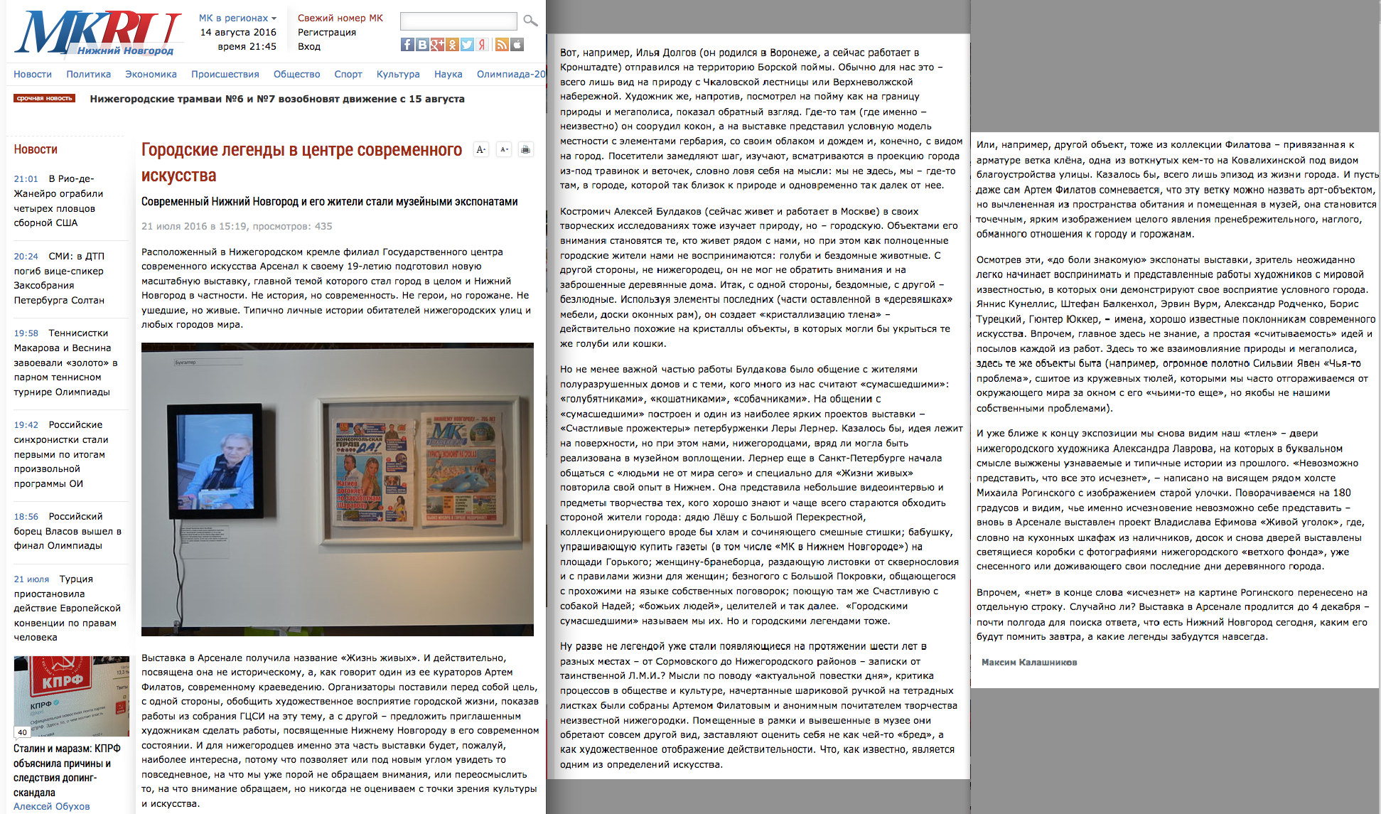 Максим Каляшников, Городские легенды в центре современного искусства. , МК.RU, 21.07.2016, Нижний Новгород