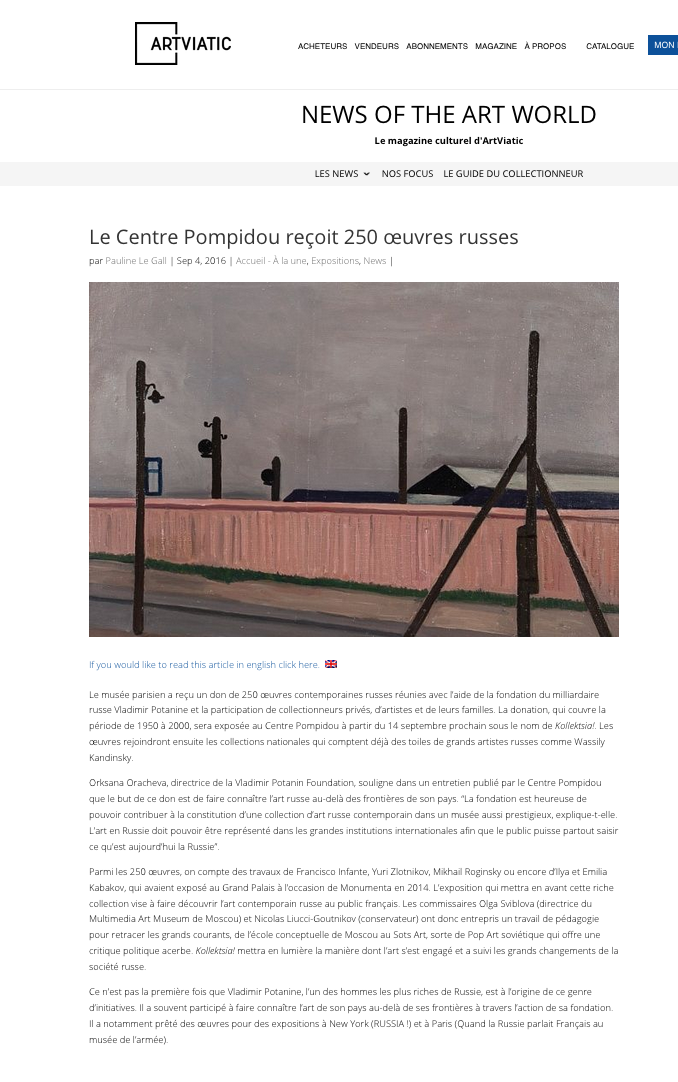Le Centre Pompidou reçoit 250 œuvres russes, Artviatic, 04.09.2016, Париж