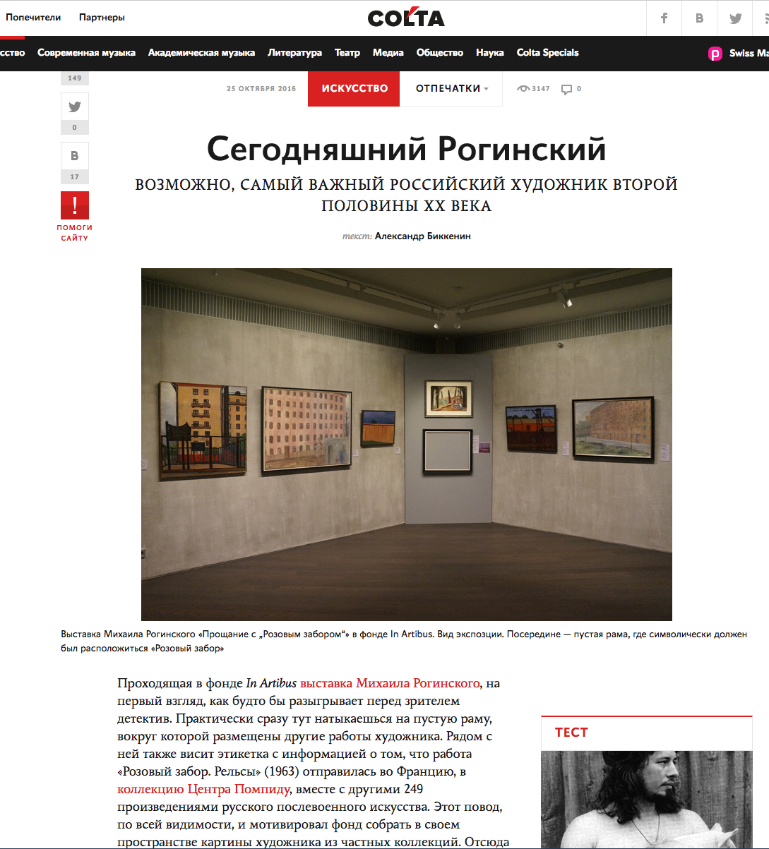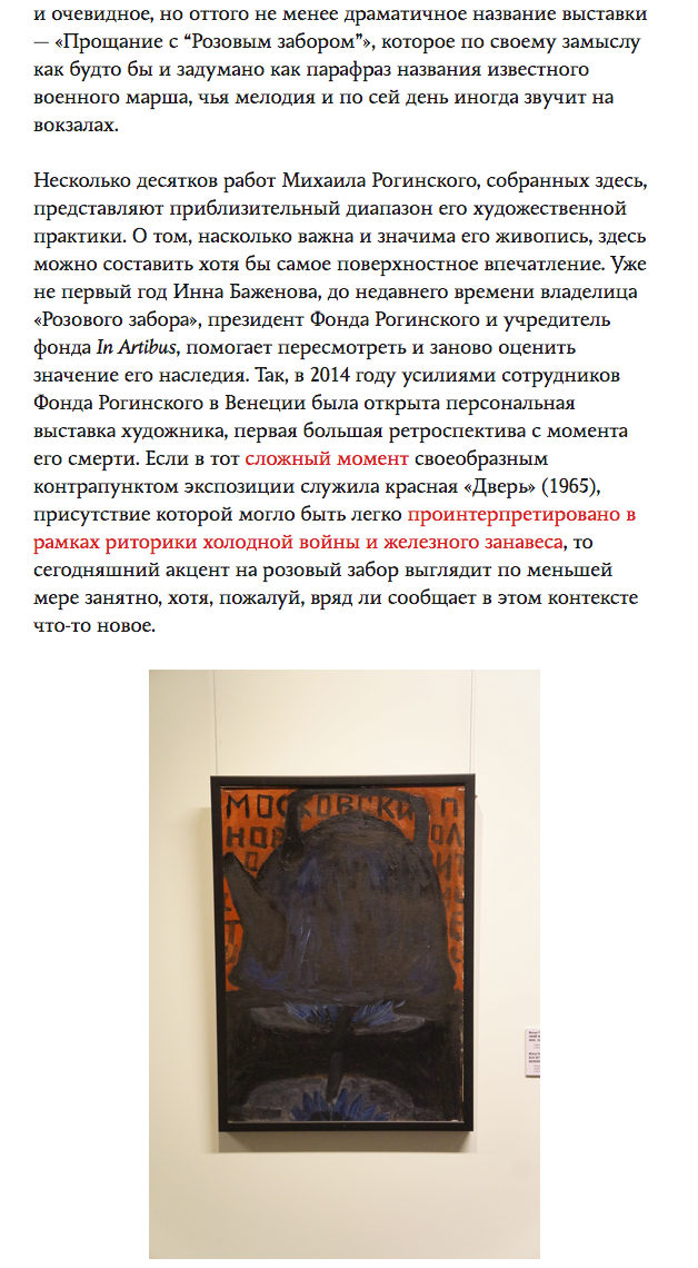 Александр Биккенин, Сегодняшний Рогинский Возможно, самый важный российский художник второй половины ХХ века , Colta, 25.10.2016, Москва