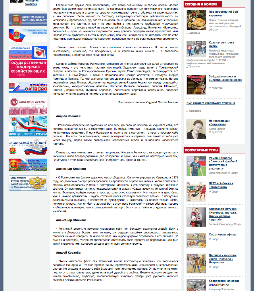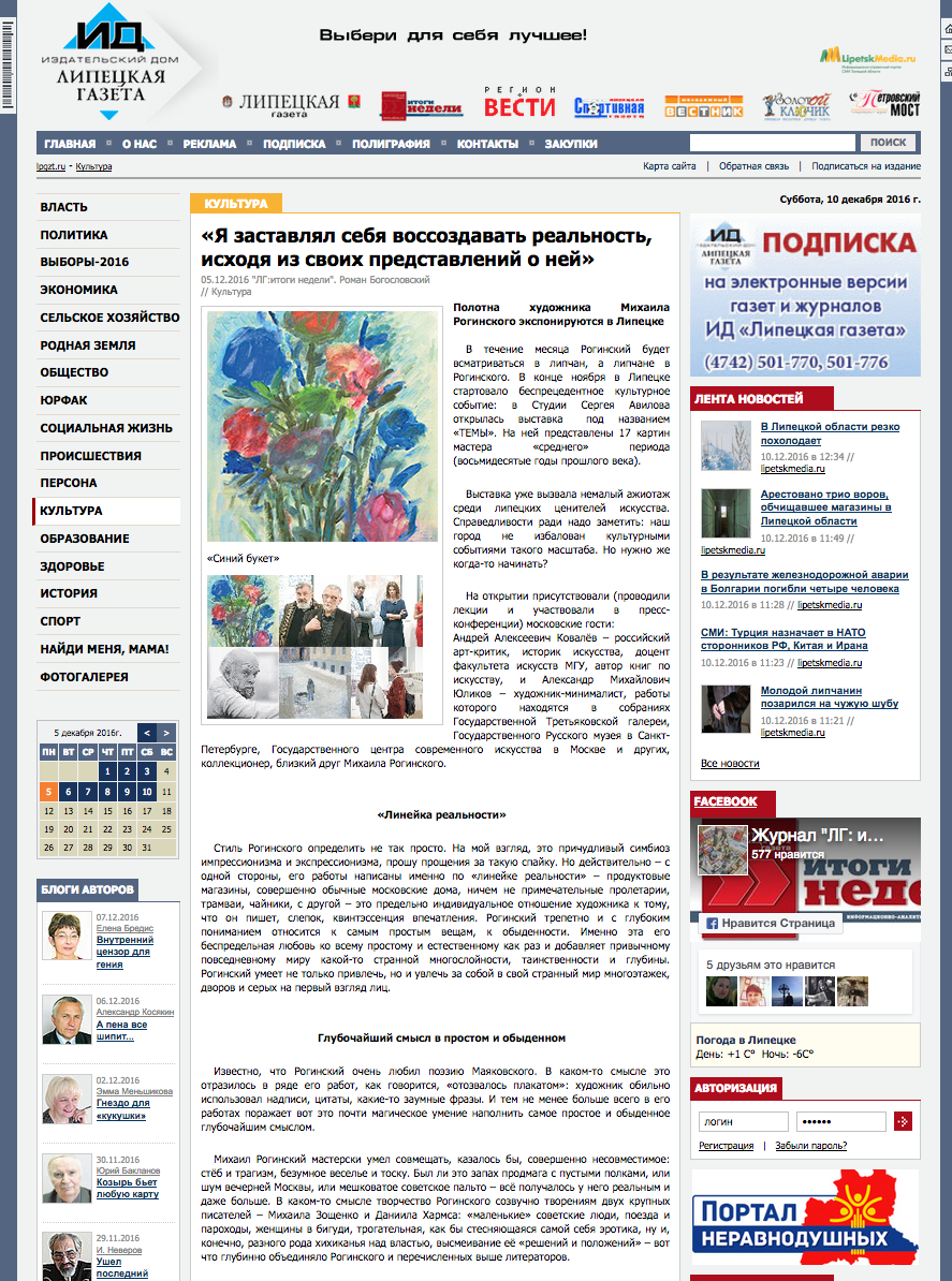 «Я заставлял себя воссоздавать реальность, исходя из своих представлений о ней», Липецкая газета, 05.12.2016, Липецк