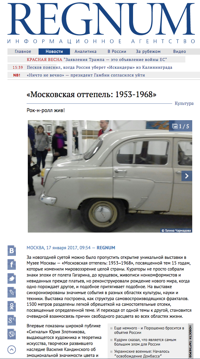 Галина Чармадова, «Московская оттепель: 1953-1968», Regnum, 16.01.2017, Москва