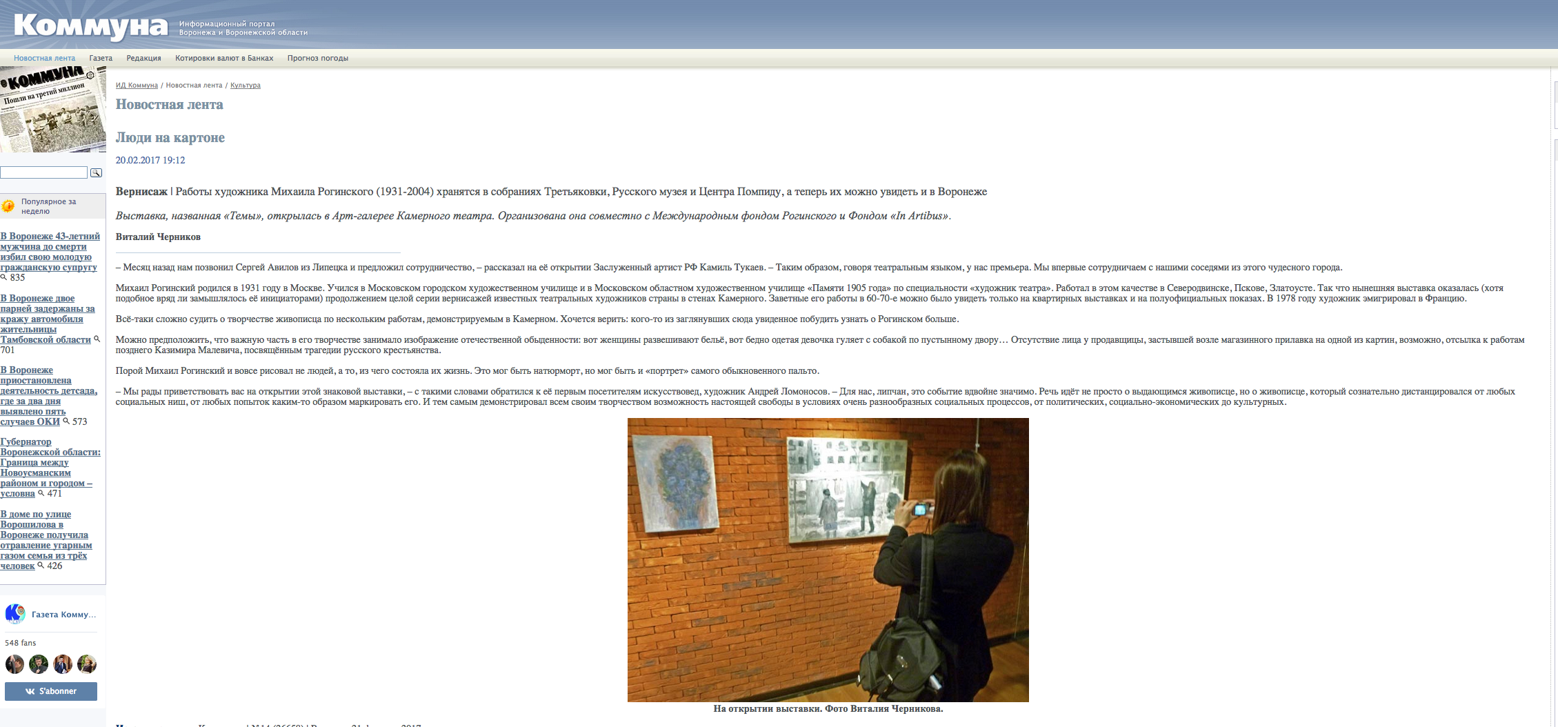 Люди на картоне, Информационный канал Коммуна, 20.02.2017, Воронеж