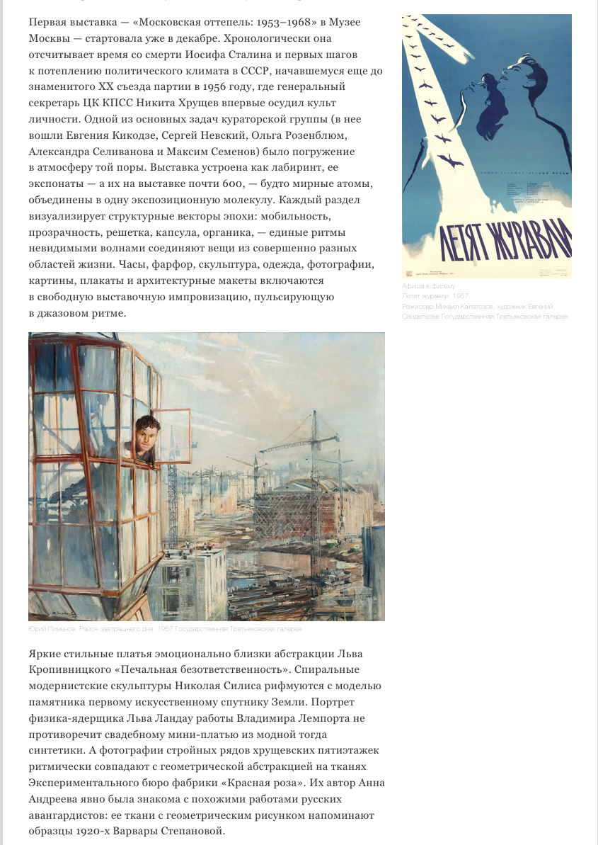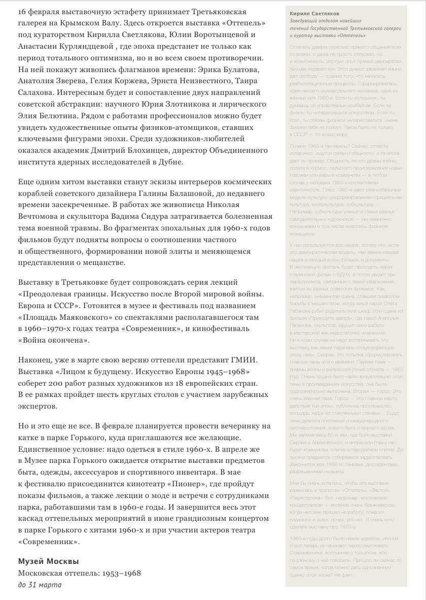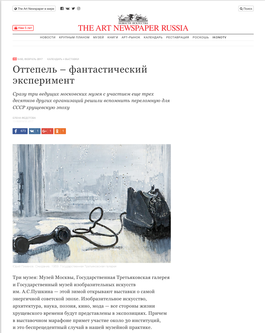Елена Федотова, Оттепель – фантастический эксперимент, The Art Newspaper Russia, 13.02.2017, 50, Москва