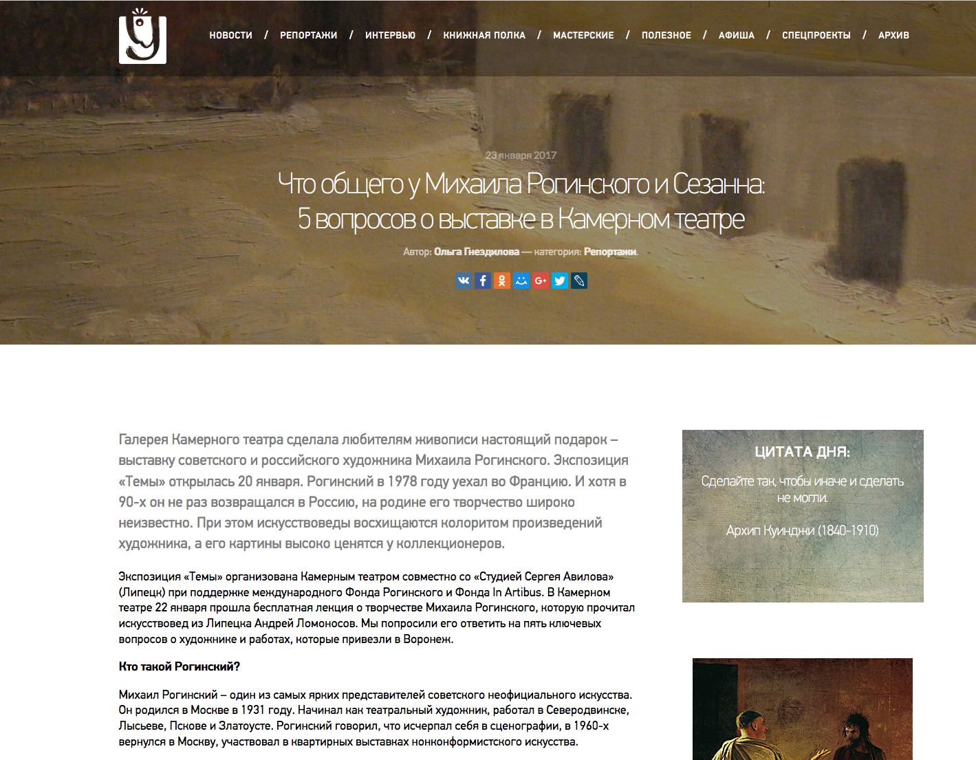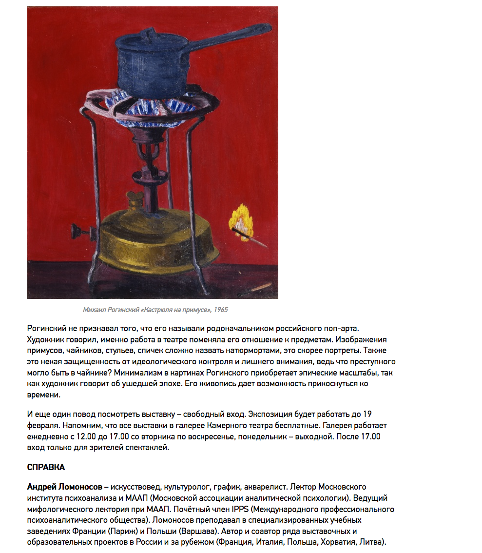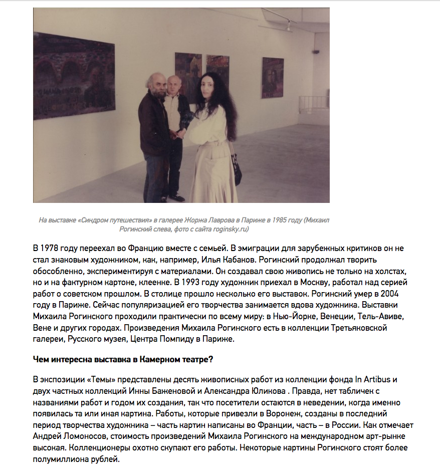 Ольга Гнездилова, Что общего у Михаила Рогинского и Сезанна: 5 вопросов о выставке в Камерном театре, umbra-media, 23.01.2017, Воронеж