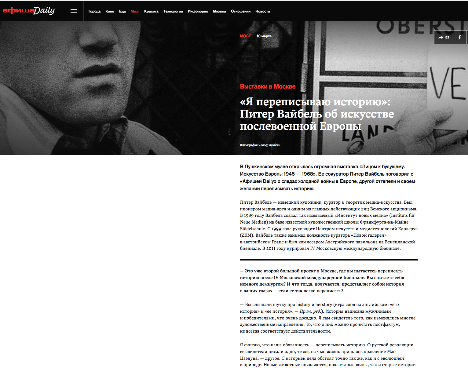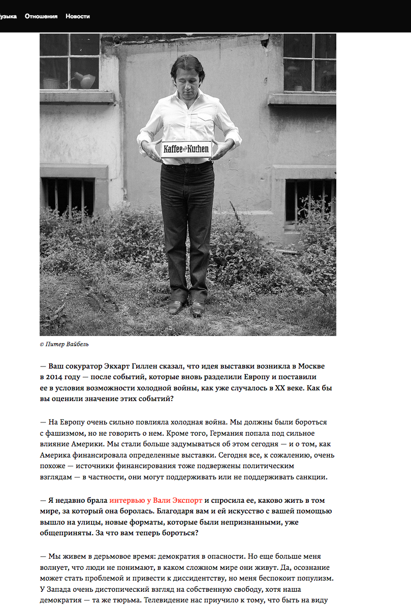 Марина Анциперова, «Я переписываю историю»: Питер Вайбель об искусстве послевоенной Европы, Афиша Daily, 13.03.2017, Москва