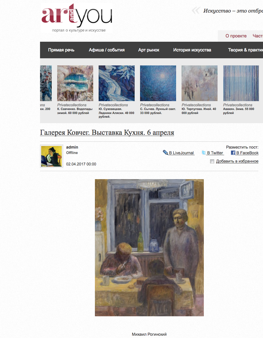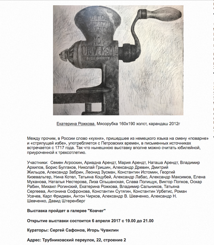Галерея Ковчег. Выставка Кухня. 6 апреля , Artyou, 02.04.2017, Москва