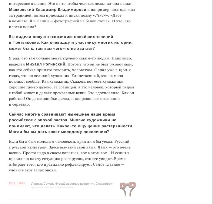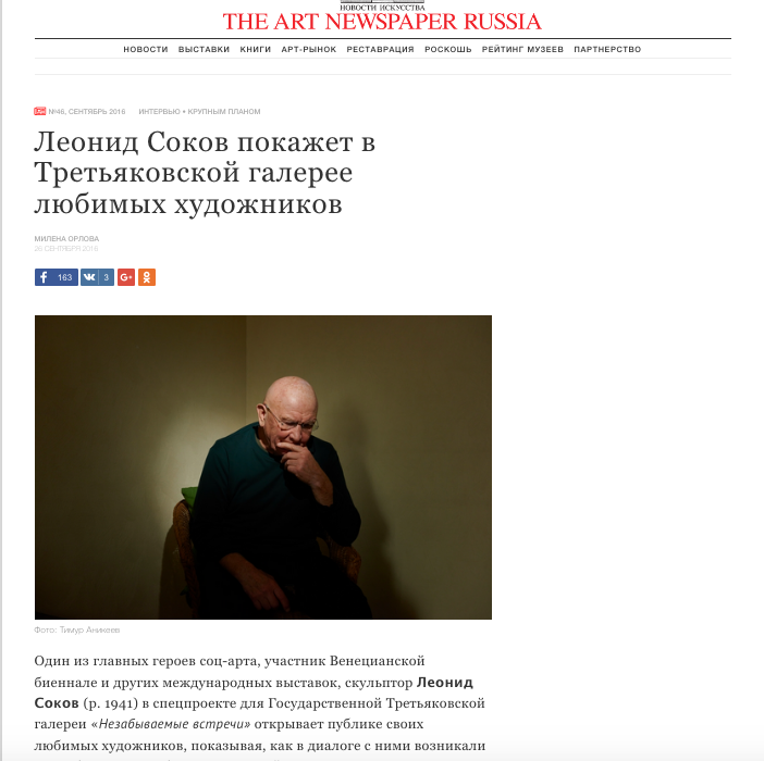 Милена Орлова, Леонид Соков покажет в Третьяковской галерее любимых художников, The Art Newspaper Russia, 20.09.2016, 46, Москва